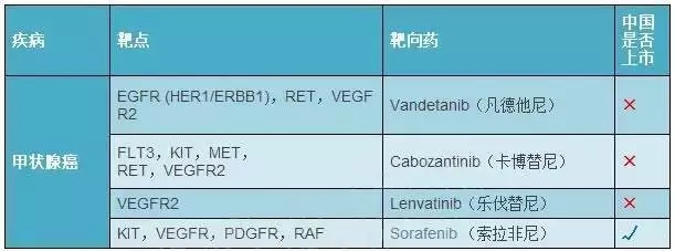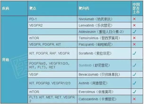 来源:医蟹;参考资料:美国FDA新药和仿制药注册与《新康界》史上最全癌症靶向药(2016版) 自我国药品审评审批制度调整以后,曾在国外获得批准的新药进入国内市场明显加速。由2016年起,截止到2017年第一季度,根据疾病种类和药物靶点,我们将靶向药物及其在中国的上市情况进行了汇总。 未在中国上市的药物尚无正式中文名称,文中提供的中文名为音译,仅供参考。 肺癌靶向药 乳腺癌靶向药 结直肠癌靶向药 白血病靶向药 淋巴瘤靶向药 甲状腺癌靶向药 黑色素瘤靶向药 肾癌靶向药 胃癌靶向药 胃肠道间质瘤靶向药 肝癌靶向药 食管胃结合部癌靶向药 多发性骨髓瘤靶向药 胰腺癌靶向药 妇科癌症靶向药 软组织肉瘤靶向药 其他癌症靶向药 |