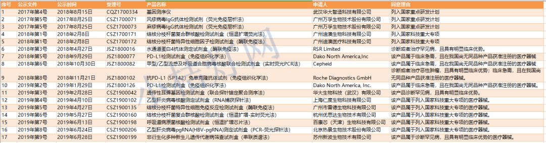 共有17项IVD产品通过医疗器械优先审批申请审核