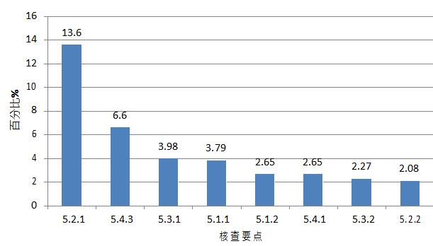 图 2. 高频次缺陷条款分布情况(临床部分) 对分析测试部分现场核查发现的528项缺陷汇总分析,频次最高的缺陷条款如下图: