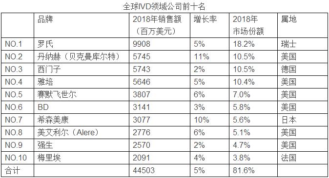 EvaluateMedTech在对行业内120家公司数据的统计基础上做出预测:到2018年,全球医疗技术(包括医疗器械、诊断产品)销售额将达到4400亿美元,增长率为4.4%。其中市场占比最大的细分行业为IVD,预计2018年占到整个市场的12.4%,达到545亿美元。 数据统计显示:到2018年,这十家巨头企业年总销售额将达到445亿美元,平均增长率为5%。销售总额合计占到整个市场份额的81.6%,占比相比2011年统计数据上升了4个百分点。 1.数据解读 市场潜力无限,发展势头迅猛的IVD行业目前在中国医疗器械行业内是最具发展活力的子行业,但其所处的国际竞争却是异常激烈,从上述表格数据可以看出: 一是:全球十大IVD巨头企业中欧美占九席之多,而美国独占六席 全球十大巨头企业中美国有六家;德国一家;法国一家;瑞士一家;日本一家。基本都是在经济和制造业强大的国家。而相比中国IVD企业,这十家巨头企业还都有着较长的发展历史与产品、市场积淀,在行业内属于技术领先型、产品全面型企业,在市场竞争中占据着十分明显的先发优势。 二是:十大企业市场占比逐渐增大,市场垄断进一步加深 依托其先进的技术和全面的产品以及品牌的传承,十大巨头企业在抢占市场先机方面占据先机,同时通过收购兼并等手段不断扩大自身,独霸世界市场。2011年数据显示十家企业的总销售额占比为77.6%,而预计将以5%的平均增长率发展,到2018年期总销售额占比将进一步攀升到81.6%,十家企业占据整个市场的八成之多——整个IVD市场将进入垄断时代。 三是: “一超多强”局面 排名首位的罗氏,凭借着近100亿美元的销售额占据着全球近两成的市场份额,显示出罗氏在IVD领域强大的统治力;丹纳赫(贝克曼库尔特)、西门子、雅培以占据市场份额10%左右成为继罗氏之后的三强,余下六家企业分场份额分别在一成以内。 2.国产IVD产业分析 目前国内IVD企业虽然在数量、规模以及技术上有着巨大的成长,市场占据率也有了长足的进步,但进口IVD试剂依然在国内市场,尤其是三甲医院等占据着较大市场。国产品牌依然面临着激烈的竞争。 国产IVD企业众多,但在规模上没有形成可以和十大巨头相当的体量;虽然有的企业在技术上达到甚至领先国外巨头企业,但其在产品丰富度上相差甚远、在品牌树立及推广上也无法和其相比。 尽管国内IVD领域很热,技术、资本流入都很大,但企业大多依然处于“小打小闹”阶段,无法集聚成规模;在品牌树立方面,国内尚且知名度不高,在国际上更是没法和这些巨头企业相抗。 现实的差距就是国产IVD企业错过了黄金发展的先发优势,而如何最大化发挥后发优势就成了业内人最关心的问题。 在掌握有先进技术的前提下,如何组建其一家产品丰富体量较大的有竞争力的公司,这需要政策、资本、技术、人才等多方位的资源配合,或许在影像界异军突起的联影会给IVD领域一些启发。总之,国产IVD产业发展还有很长一段路要走。 来源:医疗器械创新网 |