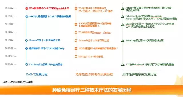 产业细分领域 在肿瘤免疫治疗的三种技术疗法中,治疗性肿瘤疫苗获批最早,其后几款重磅产品纷纷上市。纷争最多的过继细胞免疫疗法也在今年8月30日迎来首个产品。