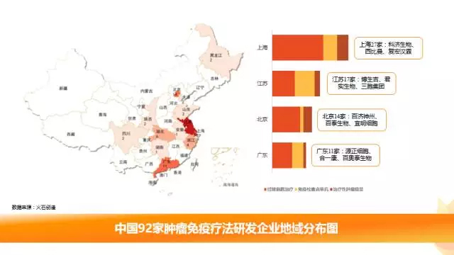 从领域内企业的地域分布分析,上海是落户企业最多的地区,其中过继细胞免疫疗法的企业最多。西比曼、吉凯基因、科济生物、恒润达生、药明巨诺、复兴凯特等纷纷选择上海。 除此以外,近年来深圳市以“孔雀计划”大力引进海外高层次人才,支持包括细胞免疫疗法在内的生物医药产业发展,吸引了一批细胞免疫治疗类创新型企业落户深圳。