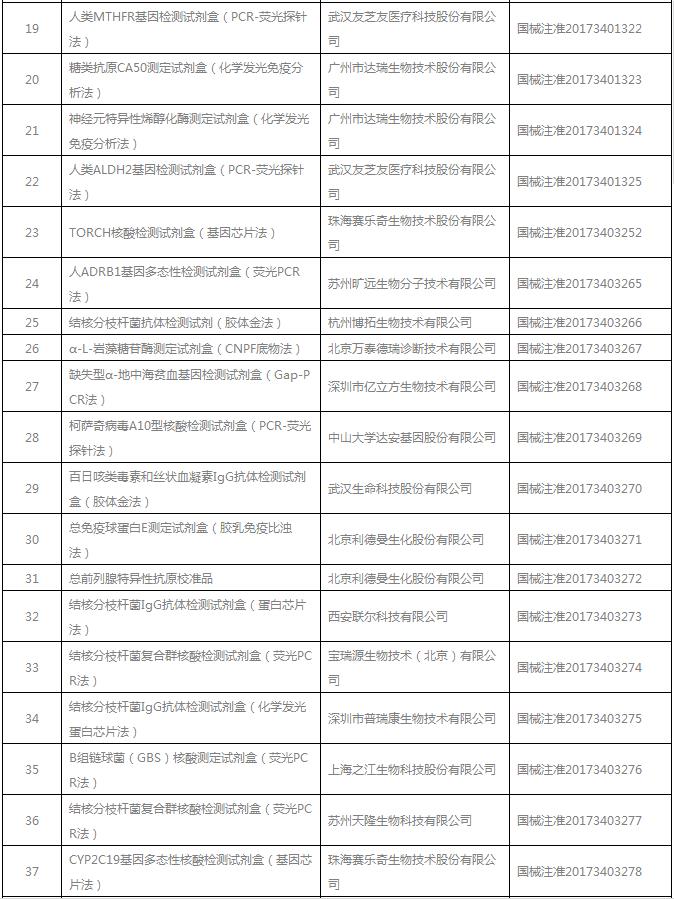 17年7月总局批准注册IVD产品目录出炉