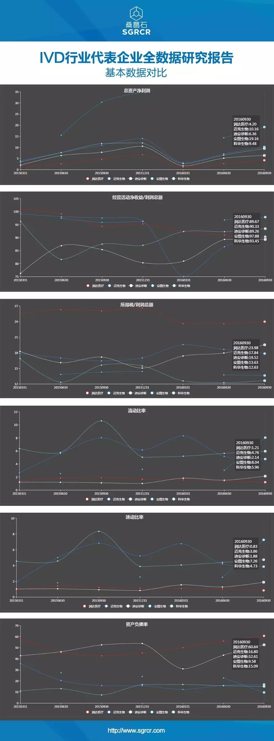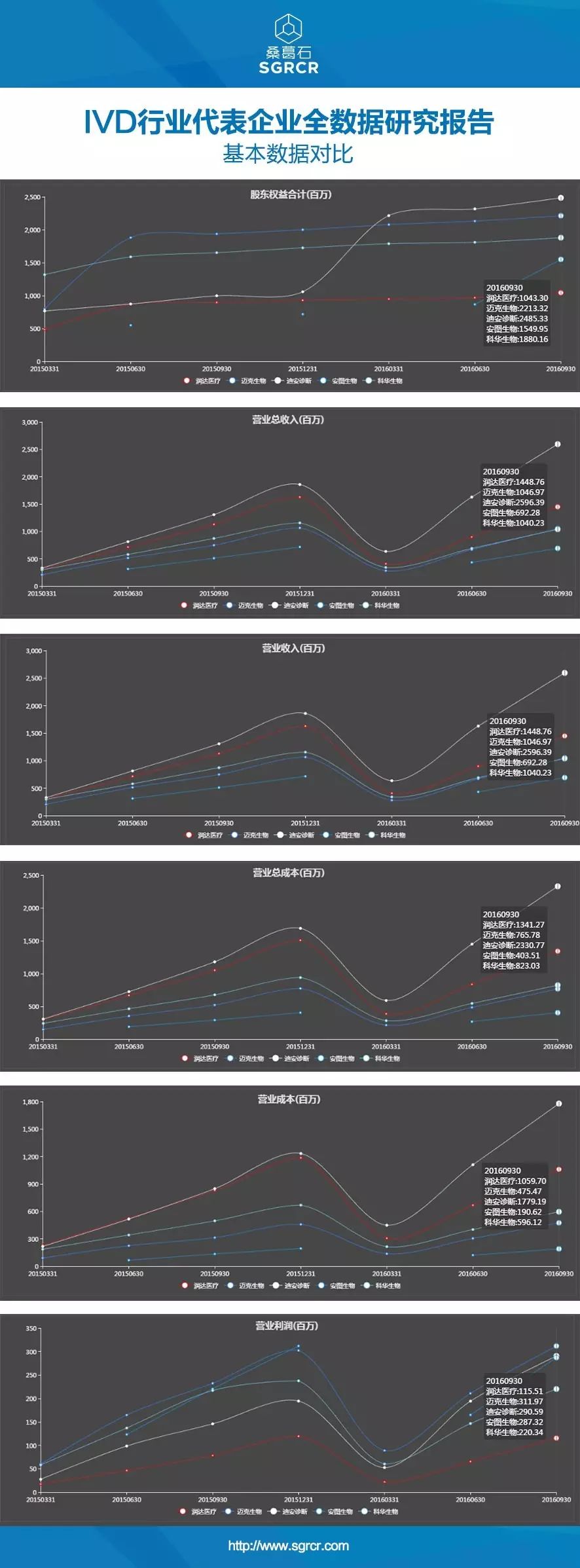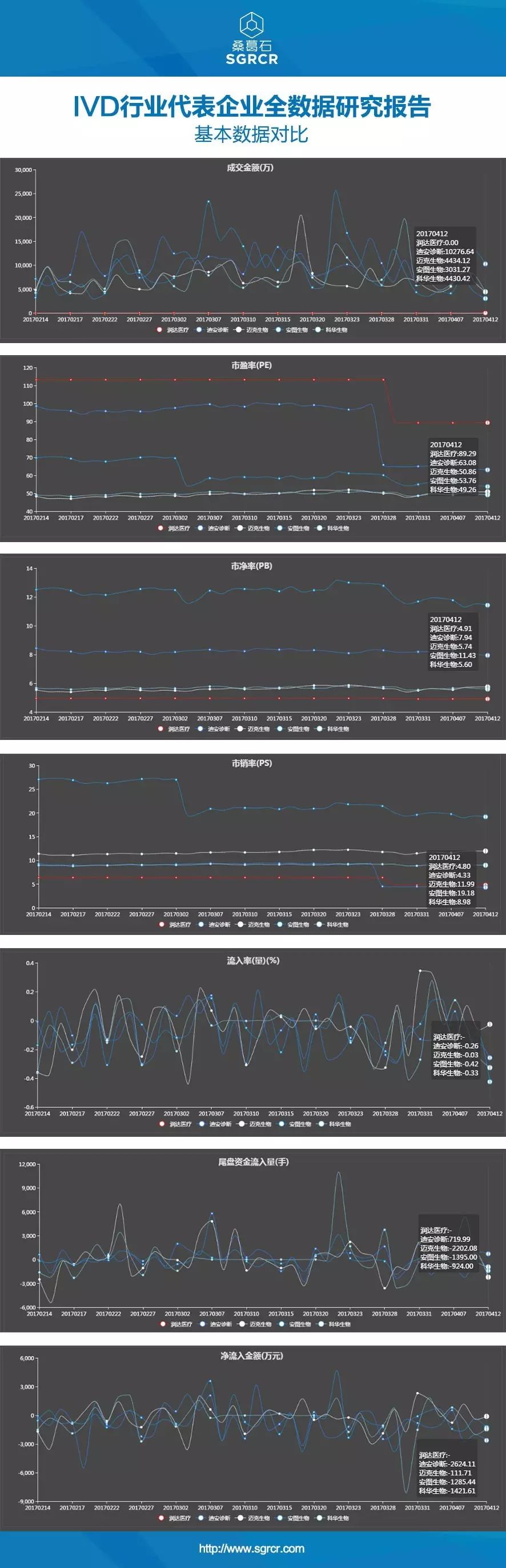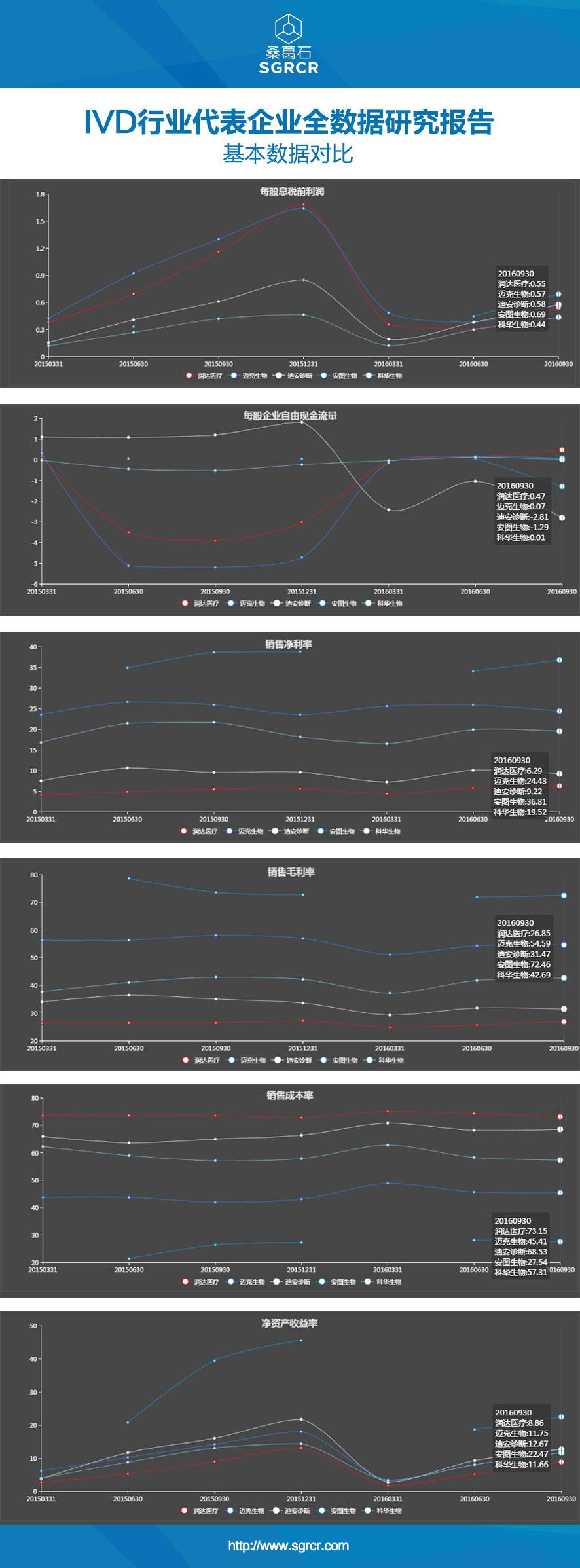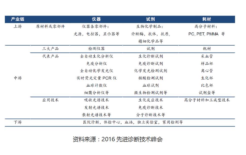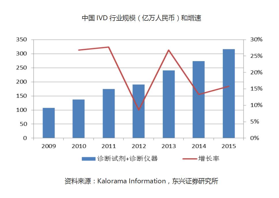 体外诊断(IVD)是指从人体采集、制备及检测样本(如血液、尿液、体液及组织等)时使用的试剂、仪器及系统,以查明及诊断疾病和其他情况。目前临床上约有80%以上的疾病诊断都依靠IVD,因此IVD被喻为医生的“眼睛”。 从全球市场分析,医疗器械和药品的市场规模约在0.5:1,在欧美、日本等发达国家比例可达1:1左右,由于中国长期存在“以药养医”现象,国内的药品规模远大于医疗器械规模。根据《2016中国医疗器械行业发展蓝皮书》的数据显示2016年医疗器械市场规模约为3080亿,而中国医药信息中心2016年数据显示2016年药品的市场总规模约为2万亿。 我国药品和医疗器械市场规模的比例0.15:1,远低于全球市场标准。 IVD市场作为医疗器械的第一大细分市场,根据不完全统计,2000年以后中国体外诊断市场规模增速明显高于全球平均水平,年复合增长率保持在20%左右。而全球IVD行业年均复合增长率预计为7%左右。据全国卫生产业企业管理协会医学检验产业分会测算,2016年我国体外诊断市场规模约为450亿元左右。 从中长期来分析国内IVD行业未来将有较大的增加空间原因在于: 1. 刚需持续增加 中国为人口大国,因为人口老龄化、传染病高发、全球第一的肿瘤发病率和人口的生育量增加等客观因素,所以对于诊断的刚需将持续增加。 2. 政策驱动 医院主要的三方面收入为:药品、医疗服务、政府补贴。而卫计委和发改委已经明确9月将取消公立医疗机构15%药品加成,而短时间内医院为了维持医院收入,只能通过增加医事服务增加医院收入,而诊断正是医事服务中重要的部分。因此IVD行业有望受益于医改的大趋势,长时间保持较快的增长速度。 但是在大趋势中,能获得利润,应先针对IVD行业的产业链结构进行分析,下图为IVD行业的产业链: 1. 上游为原材料 上游原料包括以抗原、抗体为代表的生物活性物质,以为氨基酸为代表的精细化工产品,以及检验仪器的核心零部件。其中生物活性物质占比最大,目前国内在生物活性物质的纯度同国外比有较大的差距。因此在上游原材料上有技术突破的将会获得超额利润。 2. 中游为试剂、耗材和仪器 国内的绝大部分IVD企业集中在中游,行业集中度低。按照细分市场可再分为生化诊断,分子诊断、免疫诊断和及时诊断(POCT): (1) 生化市场接近于饱和,竞争激烈,发展空间有限,国际化、诊断的封闭式为未来增长点。 (2) 分子诊断为全球增长最快的市场,增长空间巨大,但有部分前沿的检测项目在技术和效果上存在不确定性。 (3) 免疫诊断是所有IVD 子行业中空间最大和发展确定性最高的,化学发光已成为免疫诊断的主流。 (4) POCT在全球市场规模较大,大型跨国企业处于市场主导地位,在国内刚处于起步阶段,医疗终端的使用率低,国内POCT企业规模较小,但是增长空间巨大。 技术能力成为IVD行业竞争中的核心因素。在临床需求挖掘、新技术运用和成本控制领先的公司将获得技术带来的利润。 同时由于IVD产品的质量直接关系到诊断的准确和稳定性,因此品牌也是重要的影响因素。 3. 下游为服务提供 医院是体外诊断行业最大的下游需求端,据不完全统计占总市场规模的89%。目前体外诊断试剂种类繁多、医疗控费的压力增大,而集成整合式综合服务商在成本和效率方面能够满足医院的需求,因此将成为未来渠道商发展的方向。使用体外诊断试剂的同时,大多需要和仪器配合使用,因此拥有完善的渠道需要较高的专业化程度和大量的时间和资金投入。 2017年9月全国取消药品加成将会是IVD行业高速增长的催化剂,具有规模、品牌和渠道的优势的IVD企业将在中短期时间内获得较好收益,而长期来看在原料、技术和渠道服务整合具有优势的企业将会获得长期的收益。 虽然整体来说,IVD行业存在较大的增长空间和机会,但也存在着下列风险因素: 1. 技术更迭风险 IVD行业特别是分子诊断领域技术更新较快,而产品研发存在时间和机会成本,只有最终能被使用者认可的技术才具有盈利的基础,因此技术的快速更新对于企业构成风险。 2. 市场风险 跨国IVD巨头不断加大在华投入,希望能分享中国IVD行业增长的红利,而若国内企业不能在技术和渠道上快速发展去抗衡拥有有技术和资金优势的跨国IVD巨头,则市场将有被占领的风险。 3. 商业模式风险 目前市场上存在的各种商业模式,只有在最终能被各方接受才能够实现长期稳定的盈利,因此在商业模式的选择也是企业的风险。 4. 政策风险 和药品一样行业政策对于企业有较大影响,如果出现较大的政策转向,则将会对于整个IVD行业构成风险。 IVD行业代表企业全数据研究报告 |