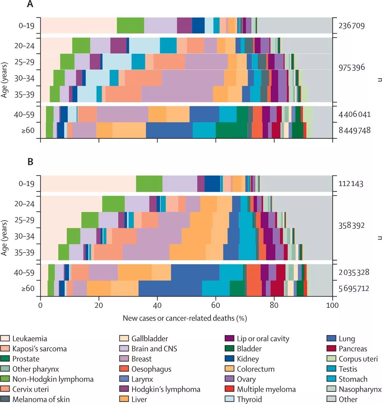 2012年,全球20-39岁年龄段癌症新发病例97.5万例,癌症相关死亡35.8万例,根据国际癌症研究机构等机构研究人员于10月27日在线发表于《柳叶刀·肿瘤学》(The Lancet Oncology)杂志的一项最新研究数据。