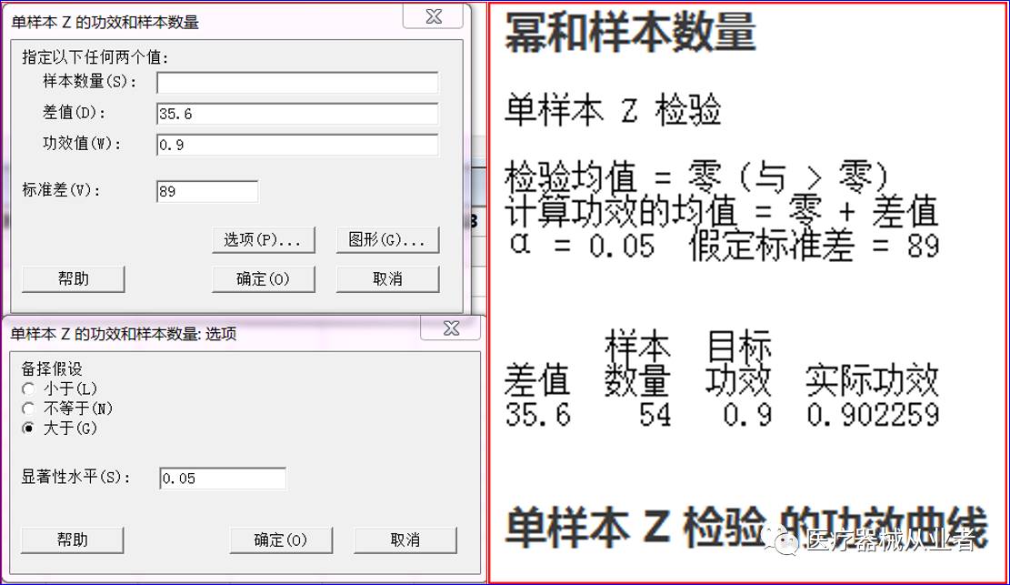 3.按钮3:单样本Z的幂,样本均数与总体均数比较时的样本量
