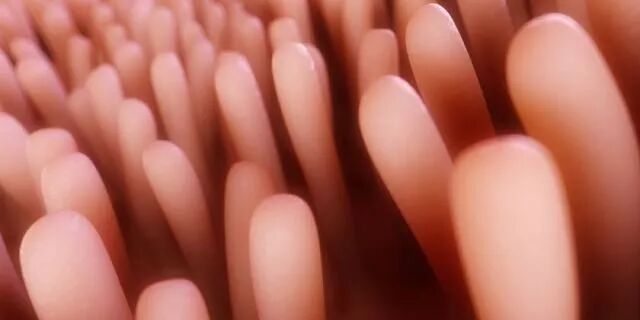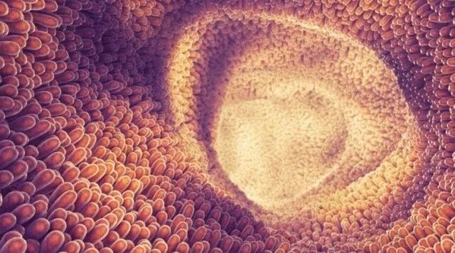 小肠是我们身体重要的消化器官,上接着胃下接着大肠,里面还居住着重要的房客肠道微生物。小肠有个十分特别的地方,它的内表面并不像一般的粘膜组织是光滑的,而是布满了“绒毛”,而且绒毛上还有更加微小的突起。这种特殊的结构使得小肠的内表面积一下扩大了六百倍,足足有200平方米!(奇点糕有点羡慕肠道菌了,住这么大的房子……哦,它们菌口也多,平衡了) 这么大的接触面积,使小肠有更多的空间去发挥功能。最基础的消化吸收就不说了,小肠同时还能分泌各种激素促进各种生理功能,甚至参加免疫反应。 小肠的结构,不怕密恐的同学可以右滑继续看图