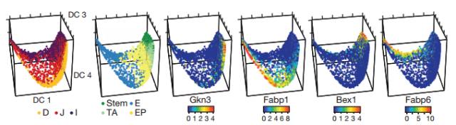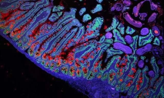 面对病原体的入侵,小肠细胞可算是用尽了全身力气抵抗。研究者观察到了一些保护基因表达的上调,多种抗菌肽的表达增加,原本不表达抗菌肽的细胞也无师自通地学会了这项技能。在感染过程中,小肠细胞的组成也有变化,包括潘氏细胞在内的一些细胞数量增加、干细胞和未成熟细胞数减少,这和以前的研究也是相符的[7]。部分细胞还会针对病原体,产生特异性的表达改变,这是从来没有被观察到的。 定位!无所遁形! 原本肉眼都看不见的细胞,现在一个一个清楚排列在眼前,我们能够看清楚它们的任何一个”小动作“,想想都觉得刺激!而且这种模型是动态的,可以用来测试各种生理、病理和药理过程,这对研究者来说是多么大的一个好消息啊! “肠道上皮同时联系着免疫系统和肠道菌群,它是细胞反应的关键所在,了解肠道在健康和疾病情况下的生理反应是非常重要的。”本项研究的第一作者,博士后研究生Moshe Biton这样说道。