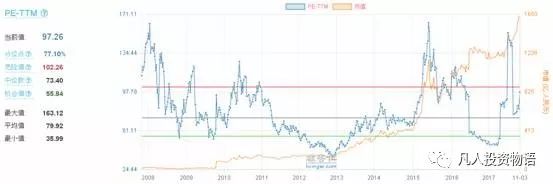 迪安诊断历史市盈率走势显示,最低市盈率为43.6,中位数为83.02,可以建仓的机会值为57.59,当前值为49.65,处于机会值下方。(如若单独计算PEG为1.91,医疗行业始终高估,不适用PEG) 迪安诊断历史市盈率(TTM)图