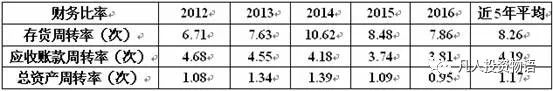 从营运能力指标表来看近几年公司的存货周转率下降,说明企业经营不是很顺利,营运资金占用在存货上的金额较多;应收账款周转率基本是逐年下降,但整体水平还良好;总资产周转率一般。运营能力有所削弱,产品市场竞争力减弱。 营运能力指标表
