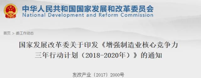 另《行动计划》指出:增强制造业核心竞争力行动计划以3年为一个周期滚动实施,并根据经济社会发展需要和环境条件变化,动态调整重点领域和主要任务。为确保行动计划顺利实施、有序推进,将逐一制定出台各重点领域突破关键技术实现产业化实施方案。 |