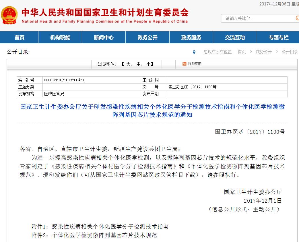 备注:因《感染性疾病相关个体化医学分子检测技术指南》篇幅较长,请点击卫计委官网地址查看【http://www.nhfpc.gov.cn/ewebeditor/uploadfile/2017/12/20171205114821466.doc】