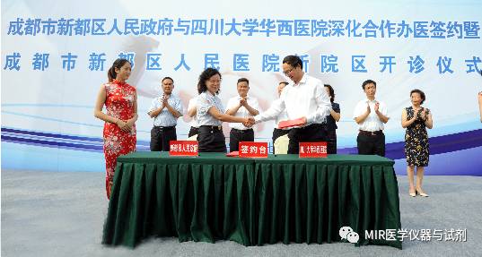 2014年7月新都区政府与四川大学华西医院(下简称华西医院)深化合作办医签约仪式举行,新都区人民医院正式成为“华西医院区域联盟网络医院”,这是华西医院首次与区级政府建立深化合作战略关系,华西医院选派普外科主治医师杜潇博士进驻新都区人民医院挂职副院长。 签约后,新都区人民医院的病人不到华西医院,也能共享到华西医院的医疗技术等。此次合作期限为3年,双方明确将在新都区人民医院规划发展、人才培养、学科建设等方面展开深入合作,华西医院将帮助新都区人民医院培养专科医生、专业护士和医院专业管理人才,并委派相关专业专家指导新都区人民医院相关学科和专业。