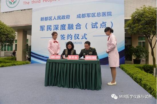 2016年3月24日成都市新都区人民政府与成都军区总医院军民深度融合(试点)签约仪式在新都区第三人民医院。新都区委副书记刘荣华,成都军区总医院院长杨永健等出席签约仪式。根据协议,成都军区总医院将与新都区建立紧密战略关系,将大型军队三级甲等医院的优势医疗服务融入到地方医疗服务体系,在医院发展规划、专业骨干人才培养、学科建设等方面对新都区三医院给予充分支持。 此举将有力推动我区完成以成都军区总医院优质医疗资源为依托,以区三医院为枢纽,以大丰社区卫生服务中心、斑竹园镇卫生院和龙桥镇卫生院为延伸基层医疗单位的区三医院医联体片区的建立。军民深度融合对于新都区加快建设覆盖全区的区域医疗联合体,推动形成基层首诊、双向转诊、急慢分治、上下联动的分级诊疗格局具有重大的现实意义。