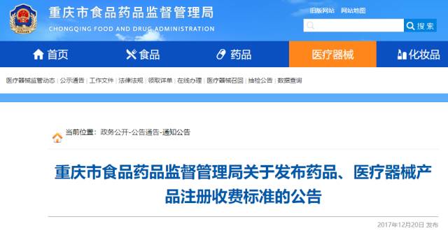 12月20日,重庆市食品药品监督管理局发布了《重庆市食品药品监督管理局关于发布药品、医疗器械产品注册收费标准的公告》,规定了境内第二类医疗器械产品的首次注册费用为74,300元,变更注册费用为31,100元,延续注册费用为30,900元。