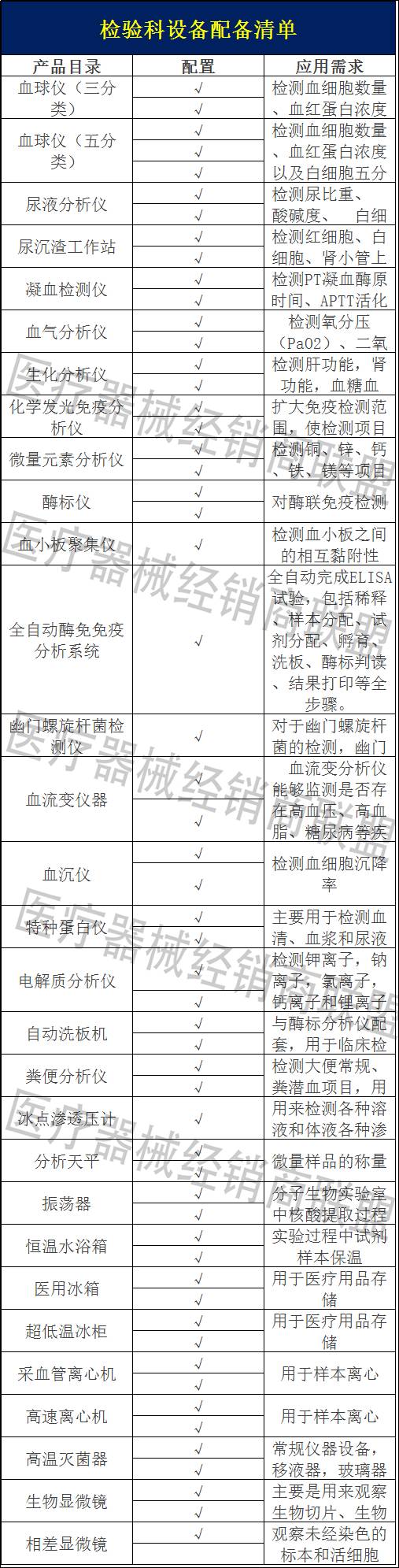 乳酸菌今天为大家整理了医院手术室、急诊科、病房、检验科4个科室需要配备的设备清单,诚意满满,拿走不谢啦~ 手术室 手术室按手术有菌或无菌的程度,手术间可划分成以下5类: 那么,作为一名医疗器械经销商,你该如何为医院推荐手术室设备方案呢? 乳酸菌这里为大家整理了两份手术室必备设备清单,除了汇总版,还有一份是民营医院手术室必备设备清单,毕竟民营医院占全国医院总数52.7%,已经超过了公立医院,市场潜力巨大。 急诊科 乳酸菌先和大家一起来看看急诊科设备构成: 那么,作为一名医疗器械经销商,你该如何为医院推荐急诊科设备方案呢? 病房 下面,我们主要介绍医院最常配置的普通病房。作为一名医疗器械经销商,你该如何为医院推荐基本病房设备方案呢? 检验科 在介绍检验科设备之前,乳酸菌先来和大家一起看看检验科的工作内容。 作为一名医疗器械经销商,你该如何推荐医院检验科设备方案呢? |