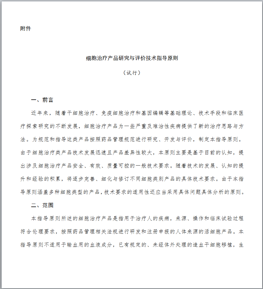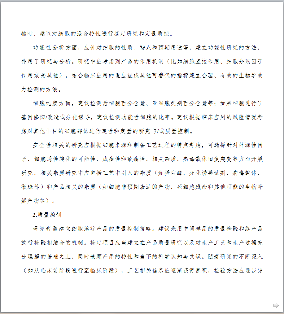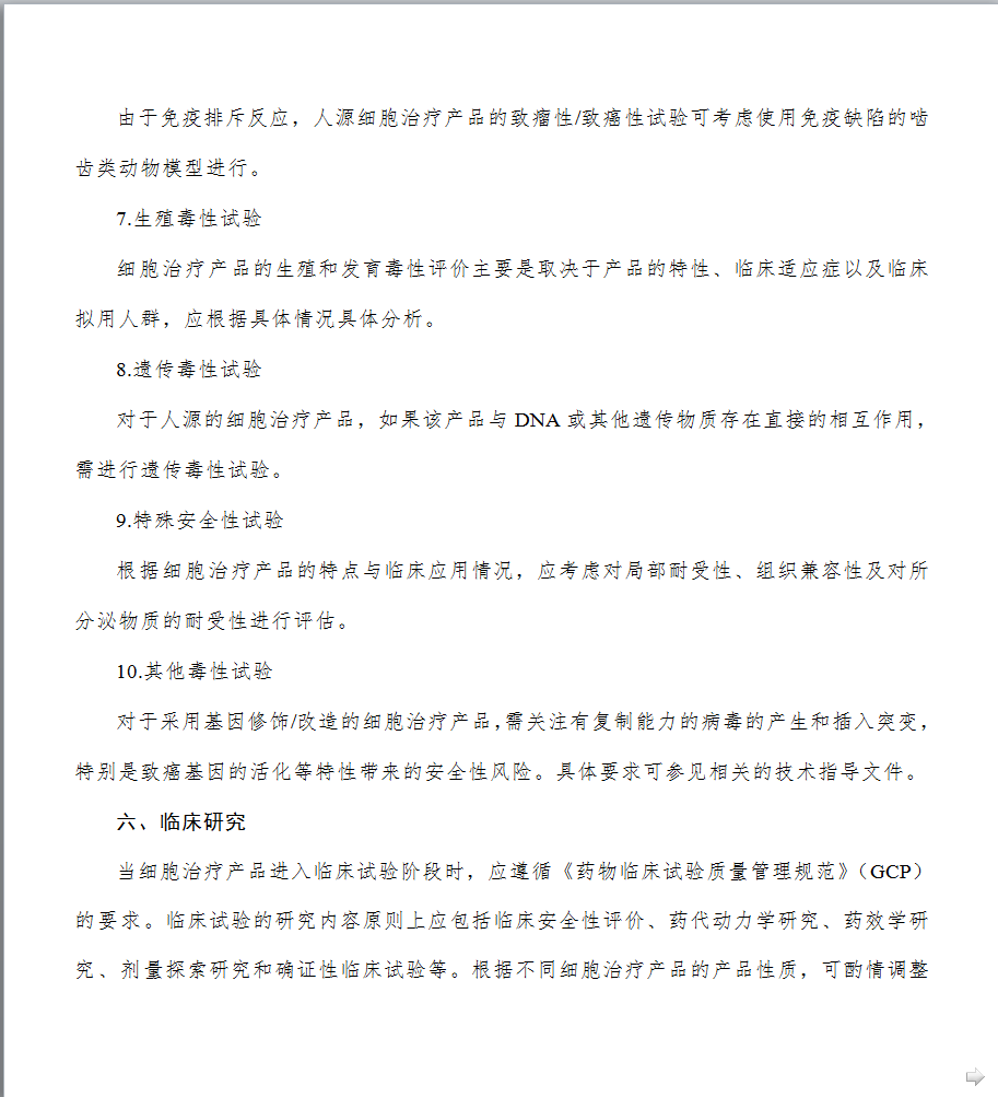 1.制定发布《细胞治疗产品研究与评价技术指导原则》的背景是什么? 细胞治疗技术是目前国际医学前沿重点发展领域,它给一些人类疑难疾病的治疗提供了新的希望。近年来,细胞治疗领域不断取得新的研究成果,细胞治疗产品的研发与评价也日益受到国内外制药企业及各国政府部门的高度关注。针对当前细胞治疗产品研究迅猛发展和日趋激烈的态势,为更好地给相关科研机构和企业创造细胞产品研发环境并提供技术支持,我局于2015年起组织药品审评中心着手起草细胞治疗产品技术指导原则。经过广泛调研国外相关指南并充分征求业界意见,药品审评中心起草了《细胞治疗产品研究与评价技术指导原则》(试行),明确了该指导原则的范围和定位,提出了细胞治疗产品在药学研究、非临床研究和临床研究方面应遵循的一般原则和基本要求。本指导原则的发布,旨在进一步规范细胞治疗产品的研发,提高其安全性、有效性和质量可控性水平,从而推动和促进我国细胞治疗领域的健康发展。 2.本指导原则的适用范围是什么? 本指导原则主要适用于按照药品进行研发与注册申报的人体来源的活细胞产品。对于按照医疗技术或其他管理路径研发的细胞治疗技术/产品,应执行其他相应管理规定及技术要求。本指导原则不适用于其他部门已有明确管理规定和技术标准的细胞类制剂,包括输血用的血液成分,已有规定、未经体外处理的造血干细胞移植等;基于目前的相关认识和管理现状,本指导原则也不适用于生殖相关细胞以及由细胞组成的组织、器官类产品等。 3.细胞培养过程中是否可以使用人血清? 应尽量避免使用任何来源的血清,包括人血清,如必须使用,申请人应提供充分的研究资料,说明在细胞培养过程中使用人血清的必要性。同时,技术审评过程中也会结合产品临床应用的价值进行风险与获益的评估。在满足人血清使用必要性的前体下,申请人需提供所使用的人血清的选择依据、安全性研究资料以及申请人对人血清质量的控制策略等,细胞治疗产品中不得使用未经过安全性验证的血清。随着技术的发展与革新,鼓励申请人积极探索更加安全、成分更加明确的血清替代物用于后续的研究与生产。 4.需要进行体外基因修饰/改造的细胞治疗产品,使用的基因修饰/改造物质材料的质量要求是什么? 具体要求可参考基因治疗产品相关的技术指导原则和文件。申请人应对基因修饰/改造物质材料的质量、安全性和生产工艺的稳定性进行充分的研究与评估,建立相应的检测标准,并进行放行检验。申报资料中应提供基因修饰/改造物质材料的设计、操作过程、生产工艺和质量控制等相关研究资料。由于基因修饰/改造用物质可能会伴随生产过程成为细胞治疗终产品的物质组成,因此应符合药品的生产质量管理规范。 5.细胞治疗产品生产过程控制中应重点关注什么? 细胞治疗产品的生产过程应遵从《药品生产质量管理规范》的基本规范和相关原则。细胞治疗产品的每一个生产步骤均应该进行研究与验证,以保证工艺的合理性和稳定性。生产过程中应对全过程进行监控,并根据工艺特点设定重要工艺步骤的监控点,并加强监控。细胞治疗产品直接输入人体,无法耐受病毒、细菌等灭活或去除工艺的操作处置,过程中的控制十分重要。申请人应充分识别并控制过程中的污染风险,特别是交叉污染风险应结合具体情况和研发的进程,尽量达到封闭化、自动化的生产。另外,还要采取措施避免不同样品或批次间的混淆。申请人为责任主体,应自行评估并严格控制工艺过程的各种风险,使每一例患者的细胞产品的质量均达到标准控制要求。另外,提醒申请人关注细胞治疗产品生产规范的相关法律法规或技术指导文件要求的更新。 6.细胞治疗产品质量放行检测项目如何设定?是否可以参考国外已经上市产品的放行检测项目和标准? 细胞治疗产品的检测机制建议采用中间样品的质量检验和终产品放行检验相结合的方法。中间样品可以是生产过程中适宜和关键的控制节点,需要考虑预留检测完成需要的对接时间,方便取样留存,抽取样本量后不影响后续处理等限制因素。检定项目应当建立在产品质量研究以及对生产工艺和生产过程充分理解的基础之上,同时兼顾产品的特性和当下的科学认知与共识。随着研究的不断深入,工艺相关信息应逐渐获得累积,检验方法应逐步完善,以适应各阶段的质量控制要求,建议确证性临床试验用样品的质量控制与商业化生产时的质控要求保持一致。 产品放行检测的项目和标准可以参考已上市品种,但是考虑到不同产品的原材料情况、生产工艺情况、过程控制和检测方法及方法的操作控制等方面的差异,还需申请人结合自身产品的实际情况制订符合产品特点的控制项目和标准。对于不能通过生产过程有效控制,但对于发挥临床疗效和安全性控制必须的重要项目等,应在检测放行中进行质控。 7.细胞治疗产品放行检测用方法是否可以采用新型的、快速的检测方法代替传统的检测方法? 放行检验用方法应经过研究与验证,特别是对于建立的新方法应进行全面的验证,对于药典中收录的方法应进行适用性的验证。对于有效期短和样本量小的产品,在建立快速、微量的新型检测方法同时,研究者应对新型检验方法与传统检测方法进行比较和评估,在没有完成