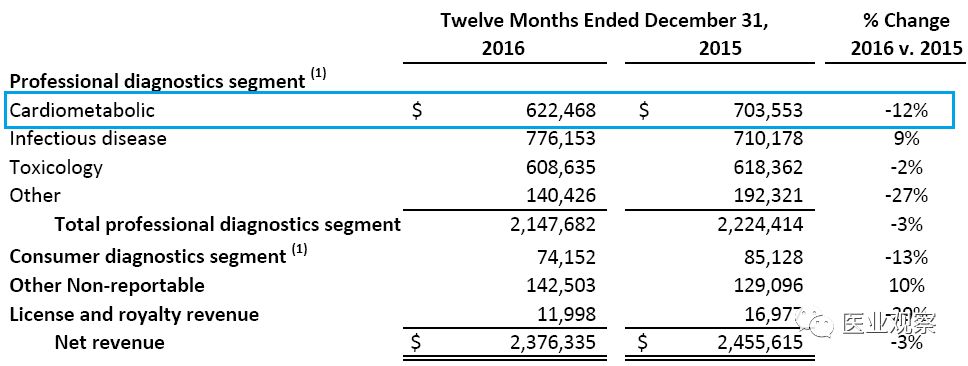 在这样的组合拳下,Alere心血管系列产品的销售额在过去三年均在6亿美元以上,笔者认为Alere虽被Abbott收购,但是其对POCT方面的全方位的解决方案确实是值得大家学习与膜拜的。