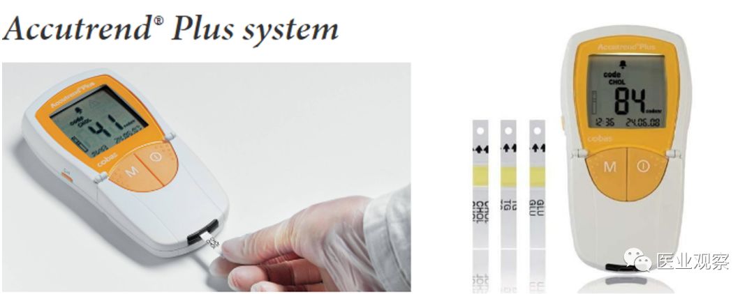 再来看看Roche, Roche Accutrend系列可谓是与Cardiocheck的检测一脉相承,Cadiocheck的创始人就是由Roche前雇员JamesConnolly一手创立,当年还和罗氏有过专利纠纷,师出同门,理解万岁,应该说血脂检测已经是罗系天下。不仅走向社区医院,基础医疗与医院还与广大的降脂药厂家如(Pfizer的lipidto,MSD的Simvastatin Tablets),与Cardiocheck略有不同,血脂只是Roche众多POCT的一个分支,并没有像PTS那样靠这个吃饭,Roche有此利器,可以与他的血糖以及凝血产品协同作战,作为慢病产品的有力补充,这都是大公司大战略下所拥有的战略整合优势,组合拳打得杠杠滴。 另外还有几家行业内比较出名的血糖公司也有此利器,如韩国SD的 lipidocare,Infopia的lipidpro, ACON的Mission lipid都打得一手好牌, 与Roche的策略相当,有些与自己的血糖产品打包组合,有些干脆将血糖试纸条一同加入lipid仪器中,但不管哪种方法他们都在打组合拳,走血糖+血脂组合路线。想必三诺买入PTS的Caddiocheck,也有此打法的考虑,正所谓,不会血脂检测的慢病管理者不是好的血糖检测老司机。