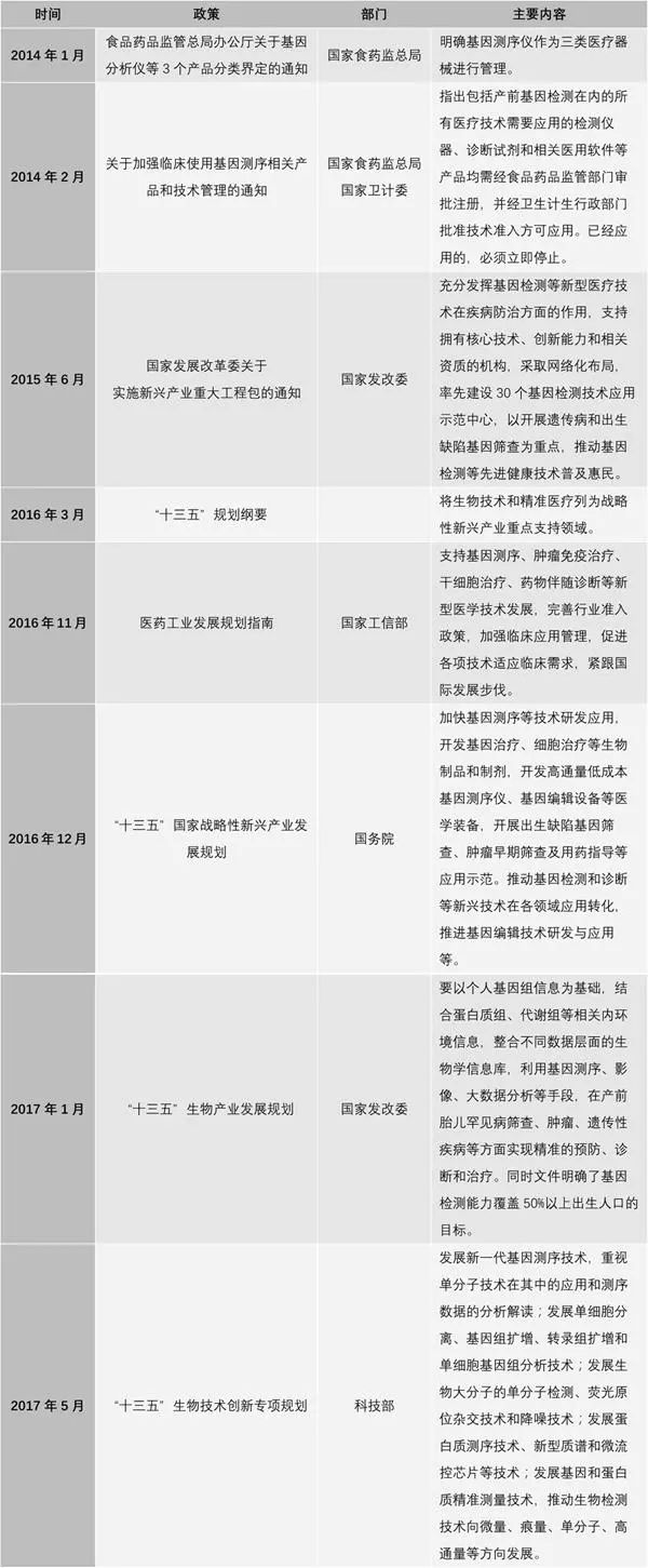一、前言:争议从未停止 近年来,基因技术毫无疑问成为炙手可热的前沿生物科技领域代名词。随着全球基因产业的飞速发展,基于人类基因数据库采集与分析的先天性优势,我国基因行业技术迅速获得突破,基因测序市场增速明显,产业也逐步从幼稚期走向成熟。 2017年之于国内的基因行业注定是不平凡的一年。贝瑞和康和华大基因两大巨头接连登陆资本市场,华大基因更是在上市后连获19个涨停板,不仅引得资本市场对基因行业兴味更浓,质疑声也随之而来:华大的高估值全是泡沫?基因测序只是炒冷饭?根本是伪高科技?精准医疗短时间可望而不可即?一时间,无论是股民还是基因行业从业者,都不清楚谁才是“套”中人? 因而,金融界上市公司研究院本篇行业研究,将重新聚焦基因产业,通过分析A股基因相关上市公司近年来的整体发展变化,以期呈现现阶段基因行业在资本市场的真实发展业态。 笔者发现,基于良好发展前景的预测,A股基因行业上市公司在市值和估值方面表现高涨,但总体已然趋于理性。与投资的火热相比,基因产业发展却不如表面那么光鲜亮丽。 不可忽略的一点是,国内基因测序市场正在逐渐走向成熟,即便带着高科技的帽子,商业化后面临激烈的市场竞争,基因行业公司无疑要和众多一般行业公司一样,面临抢占市场、回馈业绩等方面的压力。届时,群雄逐鹿也会向寡头竞争演化,出局者将越来越多。 相对应的,基因测序的真正价值不应与虚无缥缈的天赋检测等词汇挂钩,其未来价值将体现于借助基因编辑等手段实现基因治疗,届时才将迎来基因产业大爆发,而基因治疗的曙光已然迎来。 二、基因产业发展面面观 基因检测可用于诊断疾病,也可以用于疾病风险预测。 一般基因检测方法包括荧光定量PCR、基因芯片、液态生物芯片与微流控技术等。其表现为只能对某一个或几个基因或者某一个基因上特定片段进行测序,或是准确性上存在不足,但相关产品在各自细分市场上仍占据了重要地位。 相比之下,基因测序技术能够通过测序设备对全基因组序列进行测定。当前占据基因测序市场主要份额的第二代高通量(NGS)测序仪,便具有测序通量和准确度高,且成本相对低廉的特点,让基因检测得以广泛应用于产前检测、新生儿遗传性疾病检测及部分复杂疾病的辅助检测,尤其是在肿瘤预防治疗等领域逐渐发挥价值。 虽然第二代基因测序技术已经成熟,但就国内市场而言,基因相关企业主要集中在测序行业中游领域,提供基因测序服务,而上游的基因测序仪生产仅有个别企业涉及。 其中,华大基因通过并购美国测序公司CompleteGenomics实现测序仪国产化,于2015年推出了首款自主研发的测序仪BGISEQ-500,并于2017年实现量产。也是在2015年,紫鑫药业与中科院基因组所共同推出第二代国产化高通量DNA测序仪BIGIS产品。另外几家企业则是通过合作生产模式,如达安基因联合LifeTechnologies成立合资公司、贝瑞和康联合Illumina共同合作开发推出新型测序仪产品。 2017年9月,基于单分子测序技术的第三代基因测序仪GenoCare由南方科技大学教授、瀚海基因董事长贺建奎带领团队研发成功,取得政府医疗器械证备案、初步实现产业化并已应用于临床检测。 从基因行业长期发展来看,基因测序还只是一个万亿市场开启的第一步,基因测序奠定精准医疗基石。随着基因编辑技术发展,通过精确的测序定位,可以对特定基因采用插入、删除等操作,用正常基因替代突变基因来针对致病因子予以治疗,这为癌症和一些疑难重症治疗带来了可能性。 当下,结合基因编辑技术的CAR-T疗法(嵌合抗原受体T细胞免疫疗法)成为了精准医疗市场最具可能性和前景性的市场。2017年8月,美国食品药品监督管理局(FDA)批准诺华生产的用于治疗急性淋巴细胞白血病(ALL)的CAR-T疗法Kymriah上市,成为全球首例,2017年因此被称为CAR-T元年。国内包括安科生物、复星医药等上市公司早已展开布局。日前,南京传奇生物科技有限公司提交了中国首个CAR-T疗法临床申请。 相关数据显示,中国一年有429.2万癌症新增病例、281.4万癌症死亡病例;每年全国新生儿1,600万,出生缺陷人群90万。庞大的市场需求成就了国内基因行业的蓝海,行业快速发展也为患者带来了福音。 值得一提的是,并不能将酒量检测、祖源信息检测等消费级基因检测与医学临床基因检测等同起来。 除了技术进步,政府有关政策支持无疑成为了行业快速发展的重要支撑。2014年,国家卫计委联合食药监总局发布《关于加强临床使用基因测序相关产品和技术管理的通知》,把基因检测行业从无序发展、无法可依的监管真空地带推向有序监管的道路。此后,基因测序、精准医疗愈来愈多地出现在一系列重大政策性文件中。 三、基因行业A股上市公司分析 据金融界上市公司研究院不完全统计,截至2017年12月31日,以主营产品归属于基因领域、设立基因领域子公司或投资控股基因领域公司为标准,A股基因行业有关上市公司共有52家,占A股全部上市公司数量的1.5%。其中以华大基因、贝瑞基因(即贝瑞和康)、达安基因、紫鑫药业为代表的企业深耕基因测序市场,博晖创新、凯普生物、透景生命等企业在微流控芯片技术、PCR等一般基因检测领域占据关键地位,北陆药业、西陇科学、澳洋科技等公司则通过并购介入基因测序板块,进而在基因产业链上下游进行布局。 (制表:金