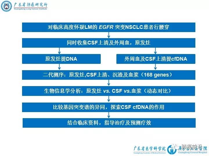 来源:肺癌前沿 广东省人民医院 郑媚美 黎扬斯 癌脑膜转移的诊治极其棘手,吴一龙团队于《Annals of Oncology》在线发表脑膜转移最新成果:脑脊液上清cfDNA可检测到脑膜转移的独特基因谱,可作为液体活检的重要途径。自2016年发表《JTO》首次提出脑膜转移更常见于EGFR突变患者,2017年《CCR》提出脑脊液CTCs诊断脑膜转移的敏感性与优越性,这也是该团队在肺癌脑膜转移领域发表的第三个重要文章。 约3.4%–3.8%非小细胞肺癌会发生脑膜转移,而其更常见于EGFR突变的患者,占9.4%。EGFR靶向治疗显著延长患者的生存期,但脑膜转移仍然十分棘手。由于脑膜病灶难以获取,对脑膜转移耐药机制知之甚少,越来越多的关注去探索是否可以代而使用液体活检即血浆和脑脊液,来追踪肿瘤的基因进化,从而阐明脑膜转移的机制。 血浆cfDNA已广泛用于液体活检,但它无法代表来源于颅内病灶的cfDNA,而脑脊液在在既往报道中有望成为CNS转移液体活检的重要途径。但目前在NSCLC,脑脊液在脑膜转移的液体活检的研究少,EGFR突变脑膜转移的耐药机制仍不清楚。 因此,本研究探讨脑脊液在EGFR突变非小细胞肺癌脑膜转移中作为液体活检介质的价值,及其肿瘤发展进化过程。 本研究的主要研究发现 在EGFR阳性的非小细胞肺癌脑膜转移的患者中,脑脊液cfDNA的EGFR和原发灶一致,同时发现独特的基因谱,提示脑脊液cfDNA用于脑膜转移的液体活检的重要价值。 脑脊液cfDNA的优势 1、血脑屏障使得只有极少数的神经系统cfDNA释放到血浆中,故血浆cfDNA反应颅内病灶的价值有限;我们的研究进一步证实,脑脊液cfDNA更能反应颅内的基因谱。 2、血浆中肿瘤来源的cfDNA容易受背景cfDNA的干扰,而脑脊液中肿瘤来源的cfDNA含量高,不易受背景DNA的干扰。 3、与血浆cfDNA优于CTCs类似的道理,CSF cfDNA比脑脊液沉渣包含更全面丰富的基因信息。 4、脑脊液cfDNA可用于动态监测脑膜转移的肿瘤负荷。 如何从进化的角度看待脑膜转移的机制 染色体和基因水平上的不稳定导至CNVs(Copy number variations)的不断进化,本研究在脑脊液cfDNA中发现独特的CNVs,提示该CNVs可能是肿瘤进化的结果,甚至可能是脑膜转移的驱动主导因素。其中临床最密切相关的CNV是MET拷贝数增加,且在既往动物及细胞实验中, EGFR阳性的脑膜转移中MET拷贝数增加可导至对gefitinib耐药,且该耐药模型对EGFR-TKI和crizotinib联合治疗敏感,提示MET拷贝数增加可能是脑膜转移的一个耐药机制。总的来说,CNVs通过不同的基因轨迹影响不同通路的表达,进而产生具有选择优势的细胞群。所以本研究推测,在脑脊液cfDNA中发现的独特CNVs可能是肿瘤进化过程中出现脑膜转移的关键。 本研究在脑脊液cfDNA发现SCLC转化的分子特征:包括大量的TP53 LOH、RB1 、MYC和FGFR1变异。而既往报道中,SCLC转化的腺癌患者会保留腺癌特征的同时,也包含SCLC的某些分子特征。尽管本研究结果并未发现SCLC形态上的转化,但我们猜测,以上检测到的SCLC分子特征很可能是肿瘤进化的早期事件,需要进一步证实。 本研究在脑脊液cfDNA中发现T790M的突变率为30.4%,远远高于之前的报道。脑脊液T790M的检测可能与标本及检测手段有关,提示本研究中使用NGS和CSF cfDNA的优越性。 |