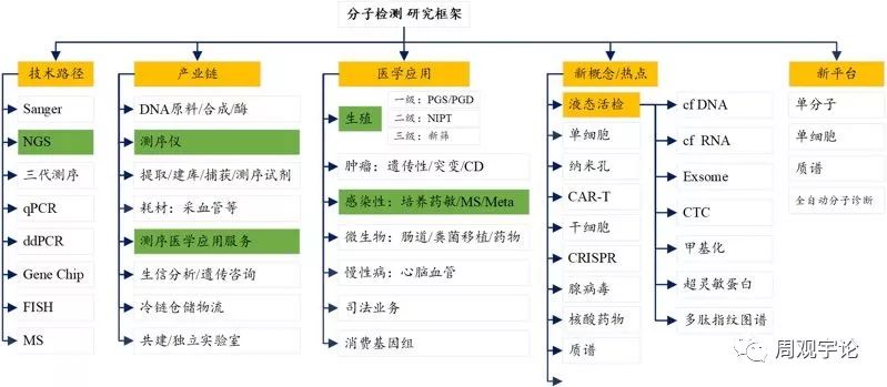 2、NGS(高通量测序技术High-throughput sequencing)全球产业链格局 图4:NGS全球产业链布局图