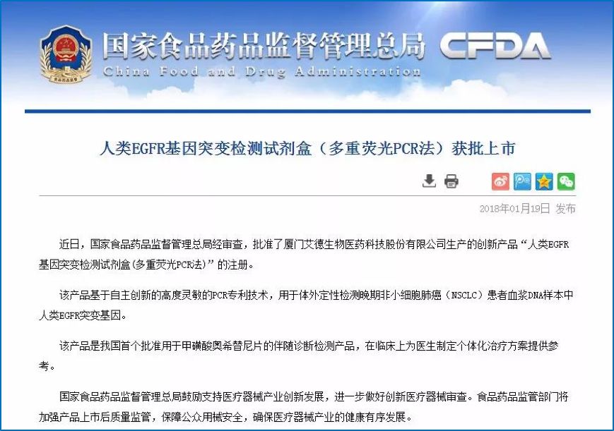 无论科研,临床还是投资,液体活检绝对是目前最火爆的方向之一。2018年初,中国液体活检圈就传出重磅新闻: 中国食品药品监督管理总局(CFDA) 批准了艾德生物的Super-ARMS®EGFR基因检测试剂盒,用于检测晚期非小细胞肺癌患者血液中EGFR基因突变状态,筛选适合EGFR靶向药物的患者。 这是个里程碑,因为是我国首个以伴随诊断试剂标准获批上市的ctDNA检测试剂盒! 市面上液体活检公司不少,竞争非常激烈。CFDA的认可对于艾德绝对是重大利好消息! 那啥是肺癌液体活检?Super-ARMS技术到底是啥?背后的数据如何呢?