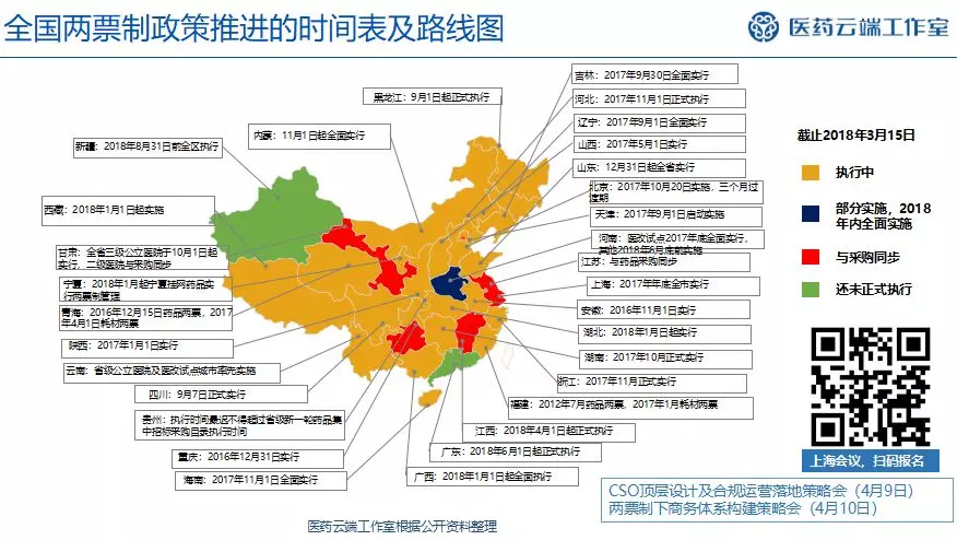从目前两票制的推行进展看,是超越政策和市场预期的,不仅所有的试点省、城市都按时出台文件并执行外,非试点省(如东三省、内蒙、山西、河北等省)也都在2017年出台文件并执行;进入2018年,剩余的省份也都陆续进入执行期。