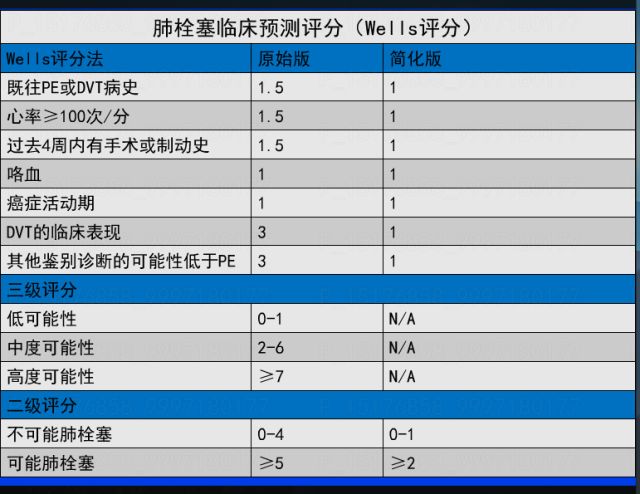 绝大多数静脉血栓栓塞(VTE)患者没有临床表现,多数病例往往得不到及时的诊断,研究显示: 在死亡前得到诊断的致死性肺栓塞(PE)不足50%; 怀疑深静脉血栓形成(DVT)的病例用客观检查得到证实的比例<30%; 约80%的DVT病例无临床表现。 想问问老师: 如何评估DVT的临床可能性? 如何评估肺栓塞的临床可能性? 伴/不伴低血压和休克的疑似肺栓塞病例如何诊断? 肺栓塞的检查手段有哪些? 临床实践中,Wells评分可用来进行DVT临床可能性评估: 在三级Wells评分中,<1分为DVT低可能性;1~2分为DVT中可能性;>2分为DVT高可能性。在二级Wells评分中,≤1分的患者不可能发生DVT;≥2分的患者可能为DVT。 对疑似肺栓塞患者进行临床可能性评估可采用Wells评分和日内瓦评分: 对于伴低血压和休克的疑似肺栓塞病例,采用以下流程进行诊断: 对于不伴低血压和休克的疑似肺栓塞病例,采用以下流程进行诊断: 肺栓塞典型的临床表现是突然出现不明原因或患者难以解释的呼吸困难,或者心功能稳定的患者突然倒地、不明原因的心功能不全加重。另外不明原因的血压下降和/或晕厥、不明无力/虚脱、不明原因的低氧血症也应该考虑肺栓塞。肺栓塞最常见的临床体征是呼吸和心率增快。 肺栓塞的检查手段有心电图、超声心动图、血气分析、肺通气-灌注扫描、肺动脉造影、胸部CT、磁共振、D-二聚体。X线胸片、心电图、超声心动图和血液生化可除外其他引起的胸痛(急性心梗、主动脉夹层、动脉瘤破裂等)和呼吸困难(如左心衰竭)的原因。 1. 心电图 肺栓塞患者最常见的心电图表现为窦性心动过速;其次为右心负荷过重、右心衰竭,心电图主要表现在房性快速心律失常、不完全右束支传导阻滞、V1导联呈QS波、右胸前导联(V1-4)T波倒置或者ST段压低、S1QIIITIII。以上情况新出现对诊断肺栓塞有一定的价值。 2. X线胸片 肺栓塞患者出现肺动脉高压和右心功能不全,胸片表现在肺动脉段突出、右下肺动脉增宽、上腔静脉影、肺透过度增加、肺纹理减少。X线胸片不能显示肺栓塞,但可以显示其结果,如肺梗死、胸膜渗出。X射线胸片对鉴别诊断有意义,能够发现其他疾病,如排除左心衰竭。 3. 血气分析 肺栓塞患者氧分压及血样饱和可能下降,二氧化碳分压可由于过度通气而下降;20%的肺栓塞患者动脉氧分压正常。血清分析与肺栓塞的相关性不好,与原有的心肺功能关系很大。但氧饱和度下降说明肺栓塞病情较重。 4. 超声心动图 超声心动图可协助诊断肺栓塞,如直接发现肺动脉内的栓子及间接发现右心室过度负荷。超声心动图可用来评价肺栓塞的血流动力学变化,如肺动脉压力。对肺栓塞的鉴别诊断(AMI、夹层、心包填塞等)有一定的价值。 5. 加压血管超声 加压血管超声对于近端DVT的诊断敏感性为90%,特异性为95%;对远端DVT的敏感性为50~60%。如果临床怀疑肺栓塞,同时存在近端DVT,则肺栓塞的诊断成立;如果发现是远端DVT,则诊断肺栓塞需要进一步检查。 6. 肺动脉造影 肺动脉造影是诊断肺栓塞最精确的方法,敏感性98%,特异性95~98%;对于大面积栓塞的患者,可直接在肺动脉近端碎栓。但肺动脉造影存在侵入性;技术性强,需要一定的条件;术后抗凝易引起出血并发症;导至血栓脱落和进一步的肺栓塞的缺点。 7. 胸部CT 胸部CT诊断肺栓塞的敏感性为53~89%,特异性为78~100%。其直接征象有:充盈缺损,双轨征、漂浮征;慢性栓塞存在钙化。间接征象有:楔形密度增高影,肺不张,肺动脉扩张,远端血管分支减少及消失。 8. CT静脉造影 可以与肺动脉CT一起进行,只需注射一次造影剂。 9. 肺灌注-通气扫描 单纯肺灌注缺损诊断肺栓塞的特异性差,随着缺损大小和数量的增加,同时肺通气扫描正常,诊断肺栓塞的可能性增加。 10. 漂浮导管 漂浮导管很少用来诊断肺栓塞,但可以用来间接判断是否存在肺栓塞。如中心静脉压升高,肺动脉嵌压不高,肺栓塞的可能性大。 11. D-二聚体 推荐用于临床低度/中度可能或者肺栓塞可能性小的患者,阴性可以排除诊断,以减少进一步不必要的检查;高度临床可能性的患者不推荐测定D-二聚体。 |