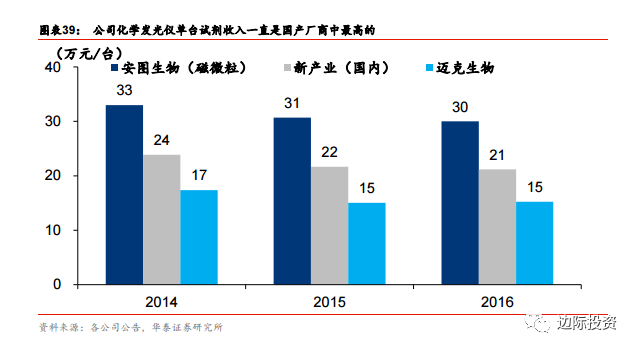 那么ivd里面的主流就是免疫诊断,免疫诊断目前最主流的方法就是化学发光诊断法,并且比例是逐年增加的。这里主要有两个大逻辑:1化学发光诊断是增速快和壁垒高的 IVD 蓝海。未来 2-3 年的 CAGR=20-25%,化学发光诊断属于封闭系统,即仪器和试剂必须由同一厂商提供。所以,后来者很难采取先替代试剂再替代仪器的替代策略。2国产替代空间巨大,2017 年国产化学发光市场规模 18-20 亿,市场占有率不超过 20%,可见进口替代空间较大。 行业都清楚了,好行业没毛病,那么安图生物为啥是迈克生物他哥呢? 1首先你得清楚化学发光这个行业如何赚钱,化学发光诊断,这个诊断仪很重要,测速越快,检测项目越多,是否模块化等等,都是你这个企业赚不赚钱的重要因素。可是有意思的是,企业都不靠卖机器挣钱,靠的是卖更高毛利率的,给检测机器配套的试剂挣钱,机器白送你都行。所以机器能检测多少项目也是一个很重要的指标。 公司今年已上市的最新主力机型 A2000 plus 不仅测试速度和模块化方面媲美进口厂商,而且涵盖 13 大类 80 项检测项目, 其中既包括肿瘤标志物、甲功、激素、传染病等常规检测项目,又增加进口厂商尚未涉足 的高血压五项等特殊项目,差异性的特殊检测项目可作为公司仪器进入三甲医院的敲门砖。 2。公司单台试剂收入国产最高。公司 40%的化学发光仪销售给三级医院,其单台年收 入维持在 30 万元/台左右,高于新产业(22 万元/台)和迈克生物(15 万元/台),是国产厂商最高的。公司产品比国产同类可检测试剂种类数量高 30%左右,出色的检测质量能够支撑品牌溢价,适合对诊断质量 要求更高的三级医院。随着逐步渗透高端市场,实现进口替代,单台收入仍有较大提升空 间。简单一句话:产品质量好,定位三级医院等高端客户,国产替代空间还很大。 3、推出首套国产检验流水线,进军高端市场,加速国产替代 说到这个那就厉害了,迈克生物、新产业、迈瑞医疗等国内企业虽然都有可模块化产品,但均不是大型、具有轨道且高度自动化的流水线。安图的 Autolas A-1流水线,是真正意义上的首套国产全自动生化免疫检验流水线,已于 2017 年 5 月份发布,公司预计 2018 年中上市。 那么这套流水线对于公司的意义在哪里?上面说了,公司的单台试剂收入国产最高,为啥最高??因为客户定位是三级医院,别人想做个免疫诊断这种高逼格的东西,肯定去三级这样的大医院啊,所以同样一台机器,三级医院所带来的试剂收入肯定比二级医院的多。但是呢,三级医院目前80%的市场都被国外给占领了,所以流水线这种具有逼格的东西对于公司抢占高端市场,加速国产替代具有重要作用。 此外,经过测算,如果2018 年公司全自动化学发光仪单台收入每增加 1.00 万元,归母净利润增加 1100 万,增速提高 2.5%,EPS 增加 0.026 元。 这说明了什么?有点像戴维斯双击有木有??国产检验流水线加速国产替代的进程,国产替代加速公司单台试剂收入,对公司业绩形成双击。所以随着全自动流水线的上市,公司业绩随着高端市场占有率的提升,从而进一步刺激业绩的爆发,产生业绩拐点,这样的安图,你心动了吗?? |