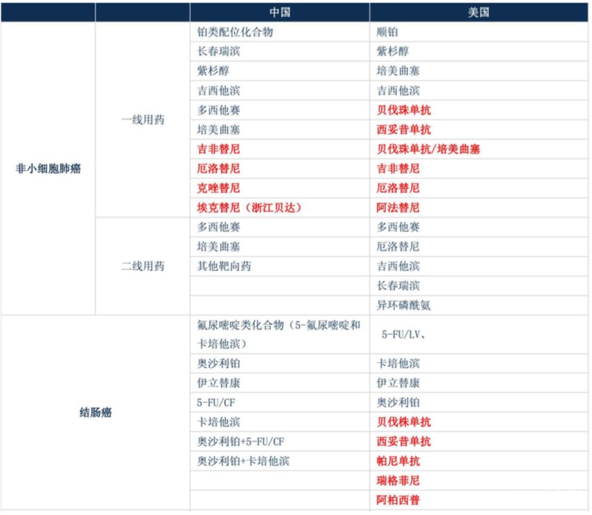 中国医师用药指南靶向药一线治疗方案滞后于美国,存在更大临床使用提升空间。