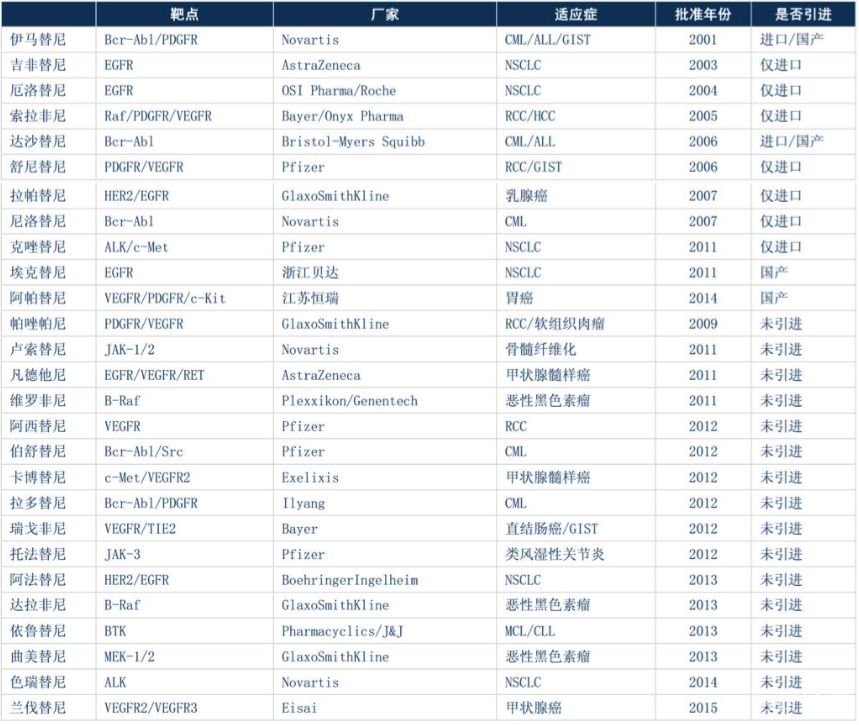 全球范围内靶向药新药研发迅猛、部分已上市靶向药进入医师用药指南一线治疗方案以及靶向药适应症的逐步扩大。