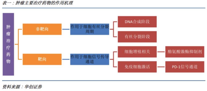 表一:肿瘤主要治疗药物的作用机理