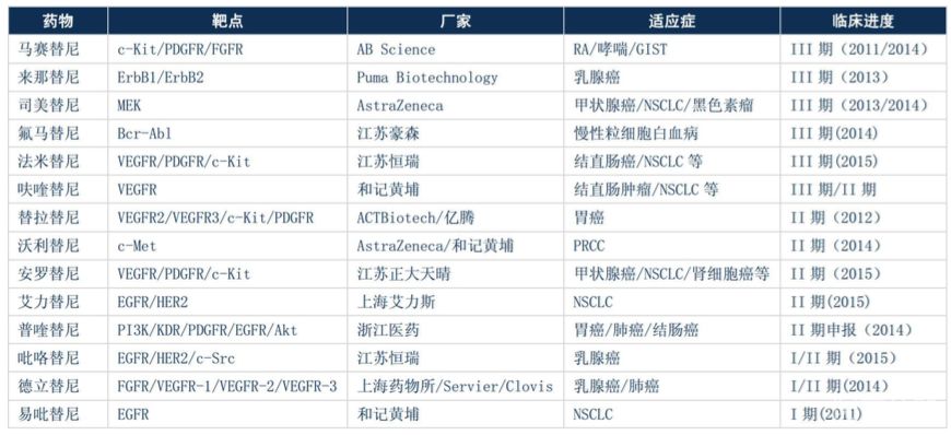 表八:部分处于临床阶段的替尼类药物