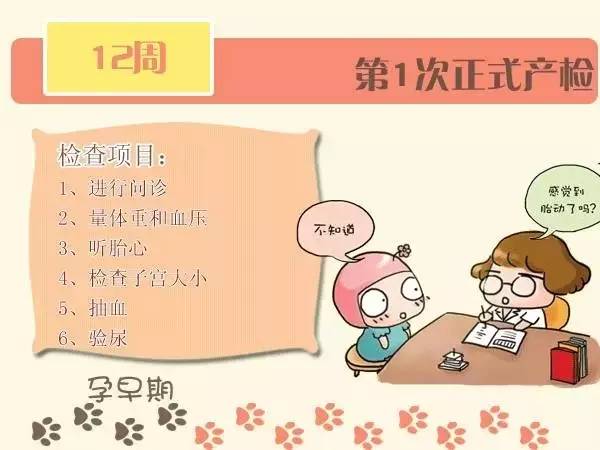 从第二次产检开始,准妈妈每次必须做基本的例行检查,包括:称体重、量血压、问诊、查子宫大小及看宝宝的胎心音等。如果准妈妈年龄在35周岁以上,建议您在18周后可抽血做唐氏症筛检(16-18周最佳)