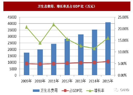 图:卫生总费用、增长率及占GDP比(万元)