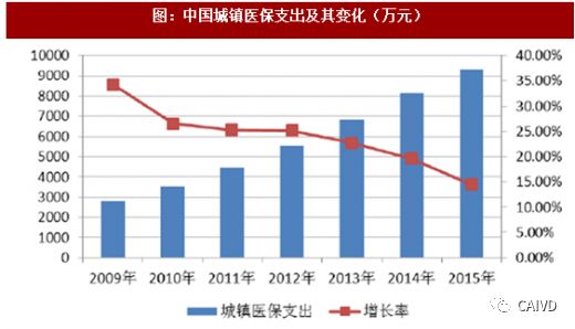 (4)医疗保障水平提高 近年来,随着医疗卫生相关改革措施的推进,我国城镇医保和农村医保的覆盖人数和支出水平都得到了显著的进步,基本建立了覆盖各人群的医疗保障网,相当程度上实现了“病有所医”。根据统计,我国城镇医保覆盖人数持续保持增长;同时,国家为实现城乡居民公平享有基本医疗保险权益,推进整合城镇居民基本医疗保险和新型农村合作医疗两项制度,建立统一的城乡居民基本医疗保险,将进一步扩大医疗保险的覆盖面。医疗保险覆盖面的提高将促进人们就诊积极性的提高,分子诊断试剂的市场需求也将随之提升。