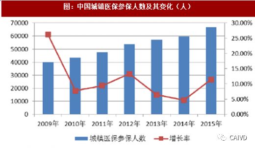 图:中国城镇医保参保人数及其变化(人)