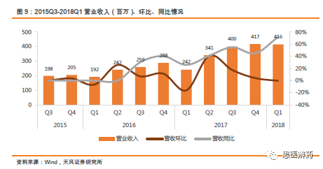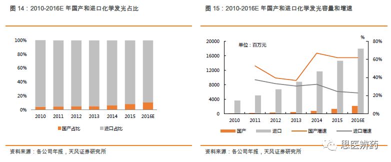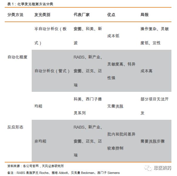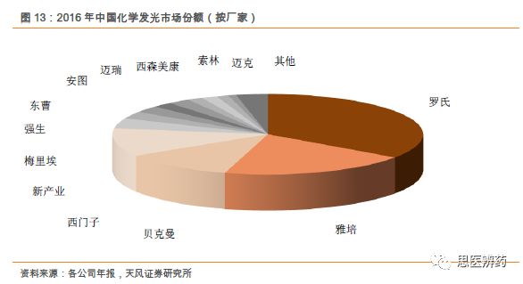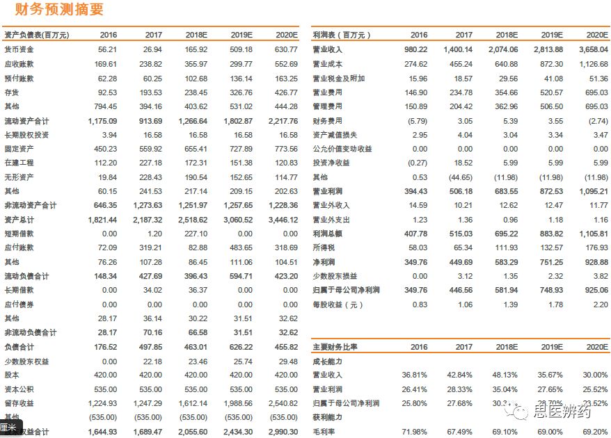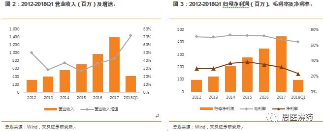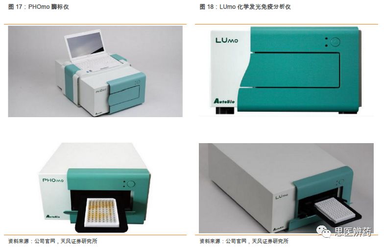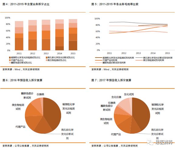 杨烨辉/郑薇团队(廖庆阳/潘海洋/王金成/李扬/李沙) 联系人:郑薇/李扬 投资摘要 化学发光行业景气度高,进口替代正当时 根据各公司年报测算,2017年中国化学发光市场240亿,占整个IVD行业30%以上的份额,排首位,预计未来3-5年还将保持20-25%高增长,行业景气度高。当前化学发光进口占比较高,占据约90%的市场份额,国产品牌凭借性能提升、技术突破、性价比高等特点正快速蚕食进口品牌市场份额,行业高增长叠加进口替代,化学发光近年来有望实现快速增长,优秀国产公司将充分受益。 安图生物作为一家老牌国产化学发光厂家,在市场发展早期公司是微孔板领域的龙头之一,随后竞争加剧,公司加快研发磁微粒相关仪器和试剂,目前磁微粒已经成为公司的主要收入来源之一,充分享受技术带来的红利。公司A2000和A2000 Plus为200速仪器,定位县级以上医院,满足大样本量的检测需求,根据2017年报,A1000plus和A6(2017年新立项)等系列仪器正在逐步开发,这系列仪器为100速仪器,适合基层医院小样本量使用,有望在2018年底或2019年初上市销售。 流水线加速渗透医院,生化免疫级联是核心 流水线起步于20世纪50年代,到目前已经发展了半个多世纪。Kalorama预测2016年全球市场约为70亿美金,2009-2017年增速为5%,其中金砖四国增长最快。流水线大约2009年开始进入中国,进入中国的前几年,由于市场需求还未完全释放,接受程度也在培育和酝酿,在2012年开始,流水线开始迅速铺开。 生化免疫级联,要求生化设备和免疫设备性能都要达到临床需求,级联面对的客户群都以中高端医院为主,样本通量的需求相对较高,因此高速生化仪必不可少。安图生物通过收购盛世君晖,获得东芝生化仪中国区独家代理权,收购百奥泰康75%股权,取得生化检测产品线,闭合生化产业链,为流水线做铺垫。根据2017年报,全自动联检系统中的Autowomo及配套试剂已完成注册并上市,其余仪器及配套试剂均正在逐步开发。 一季度业绩高增长,全年可期 公司发布2018年一季报,Q1实现营收4.16亿元,同比增长71.87%,归母净利润为0.96亿元,同比增长42.43%,扣非后归母净利润为0.91亿元,同比增长52.88%,业绩的快速增长主要系一方面公司并购致收入增加;另一方面公司磁微粒化学发光检测试剂收入持续增长,同时我们认为一季度流感行情带动微生物检测及代理产品vircell九项呼吸道感染病原体检测的快速增长。 估值与评级 我们预计18-20年EPS为1.39、1.78、2.20元,维持“买入”评级。 风险提示:产品销售不达预期的风险;新产品注册上市进展不达预期等 正 文 1. 多年深耕化学发光,行业地位显赫 公司成立于1999年,专注于体外诊断试剂和仪器的研发、生产、销售及服务,产品涵盖免疫诊断、微生物检测、生化诊断等检测领域。经过了17年跨越式发展,2016年9月1日郑州安图生物工程股份有限公司在上海证券交易所挂牌上市。 根据Wind,2017年公司实现营业收入14亿元,同比增长 42.84%;归属于母公司股东的净利润为 4.47亿元,同比增长27.68%。公司收入增长主要有2方面原因:1.收购东芝生化仪(现佳能医疗生化仪系列产品)的中国区销售代理业务致收入增加;2.公司磁微粒化学发光检测试剂收入持续增长,化学发光逐步实行国产迅速放量。 近五年来,公司扣非后归母净利润处于比较高增速,2017年扣非后归母净利润为4.14亿元,同比增长23.59%。2011年以来,整体毛利率处于高位且基本保持稳定,2017年产品整体毛利率为67.5%,相比于2016年72%有所下降,主要是由于并购盛世君晖,产品结构变化导至毛利率有所下降。 根据Wind,公司2017年体外诊断的营业收入为13.38亿元,增长43.20%;试剂类的营业收入为11.59亿元,同比增长28.22%,毛利率提高至76.16%;2017年仪器收入增长迅速,为1.79亿元,增速为485.15%,毛利率有所下降为24.89%。 公司专业从事体外诊断试剂及仪器的研发、生产和销售,形成了以免疫诊断产品为主、微生物检测产品特色发展的格局,产品品种齐全,能够为临床诊断提供一系列解决方案。目前公司的主要产品包括体外诊断试剂以及各类仪器,按照检测方法或应用领域分类。试剂类的产品毛利率高,公司多年整体毛利率保持70%以上,收入稳定。微孔板化学发光诊断试剂毛利率最高,代理产品毛利率也在稳步提升。 公司地处河南郑州,借助低于优势,在经济较为发达地区中南和华东片区深耕多年,2017年合计贡献7.61亿元的收入,占总收入比例57.7%。其他区域占比较小,但是2017年占比均出现不同比例增加,也处于快速增长阶段。 根据Wind,2017年中国区收入为13.17亿元,同比增长45.1%,除了中南部优势区域保持较高增长,其余区域也在快速放量,尤其是华北和东北经济发达区域,增速超过70%。各区域均衡发展,有利于产品迅速放量,尤其是新产品的放量。受区域经济发展水平影响,体外诊断行业消费呈现出一定的地域特征,需求市场主要集中在东南沿海地区以及医疗服务水平较高的各省一、二线城市。 公司发布2018年一季报,Q1实现营收4.16亿元,同比增长71.87%,归母净利润为0.96亿元,同比增长42.43%,扣非后归母净利润为0.91亿元,同比增长52.88%,业绩的快速增长主要系一方面公司并购致收入增加;另一方面公司磁微粒化学发光检测试剂收入持续增长,同时我们认为一季度流感行情带动微生物检测及代理产品vircell九项呼吸道感染病原体检测的快速增长。 2018Q1销售费用的增加主要系随着营业收入增加,工资、差旅等费