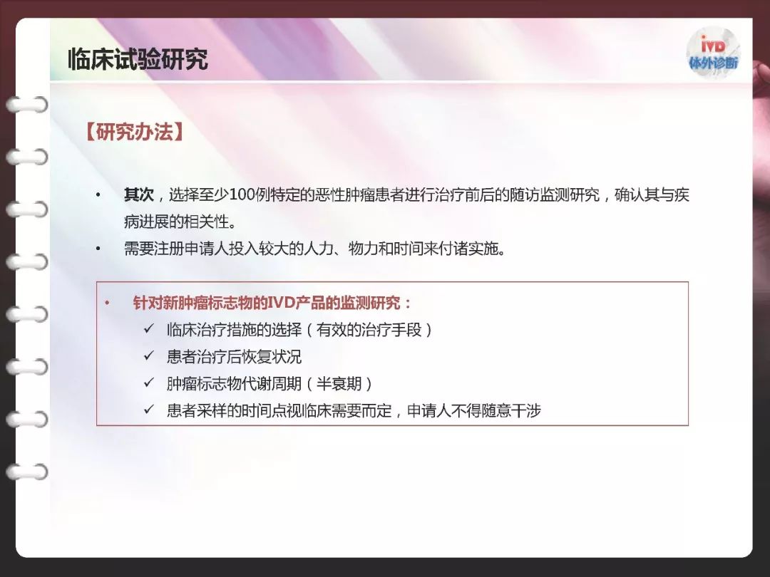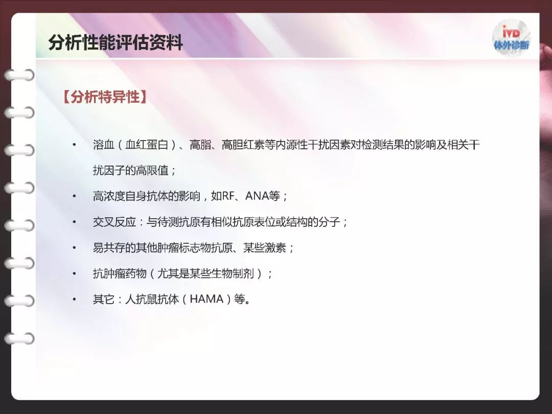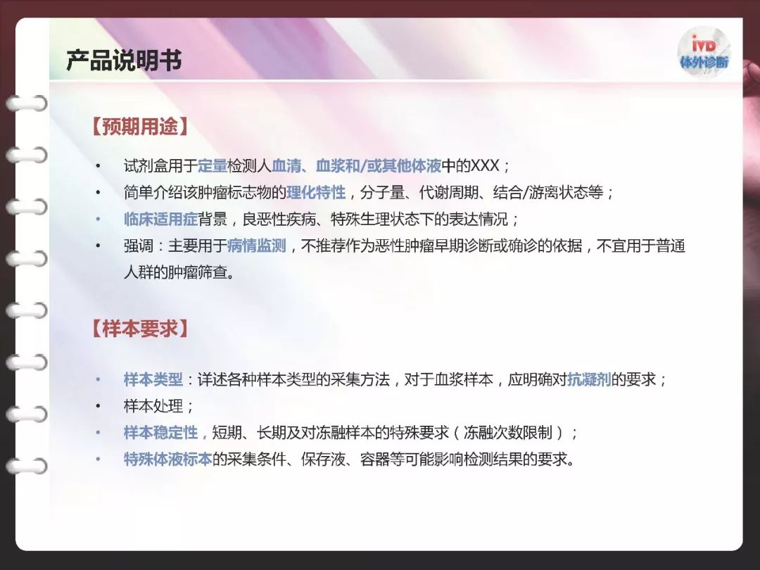 本指导原则旨在指导注册申请人对肿瘤标志物类定量检测试剂注册申报资料的准备及撰写,同时也为技术审评部门对注册申报资料的技术审评提供参考。 本指导原则是对肿瘤标志物类定量检测试剂的一般要求,申请人应依据具体产品的特性对注册申报资料的内容进行充实和细化,并依据产品特性确定其中的具体内容是否适用。 本指导原则是对申请人和审查人员的指导性文件,但不包括注册审批所涉及的行政事项,亦不作为法规强制执行,如果有能够满足相关法规要求的其他方法,也可以采用,但需要提供详细的研究资料和验证资料。应在遵循相关法规的前提下使用本指导原则。 本指导原则是在现行法规和标准体系以及当前认知水平下制定的,随着法规和标准的不断完善,以及科学技术的不断发展,本指导原则相关内容也将进行适时调整。 肿瘤标志物类定量检测试剂是指利用各种方法学对人血清、血浆或其他体液中的肿瘤标志物进行体外定量分析的试剂。本指导原则适用于进行首次注册申报和相关许可事项变更的产品。 从方法学考虑,本文主要指利用基于抗原抗体反应原理的免疫学方法对肿瘤标志物进行定量检测的体外诊断试剂,如酶免疫法、化学发光法或微粒子酶免法等(不限于上述方法学),而不包括组织受体检测、生物化学方法、免疫组化染色法、分子生物学方法类检测试剂,有利之处可参考执行。 |