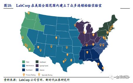 3.2、 全国化分级式连锁布局和精细化管理提升效率 全国化布局,分级式连锁模式。由于美国疆域广袤、小的医院和诊所分布很分散,单个客户ICL检验项目的单笔金额小但数量庞大,频率高,并且样本放置有一定时间限制。因此LabCorp需要在全国范围内建立连锁实验室,且根据不同服务范围的大小来设立不同级别的检验实验室规模。