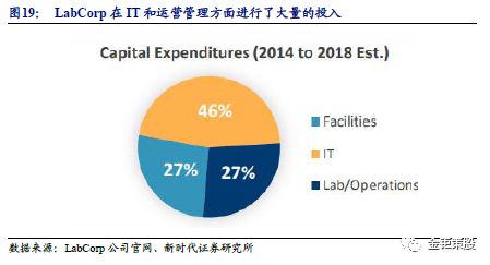 精细化管理模式提升效率。ICL的行业壁垒不仅在于技术上,更多在于连锁经营的综合管理能力上。具体表现为:高效的物流网络能力,现代化的信息服务能力,严格质量管理能力,优秀的成本控制能力。2014年以来LabCorp在IT方面进行了大量的资本投入用以来提升信息化程度和运营的效率。