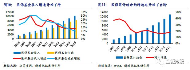 2.2、 医保控费:具备成本优势的ICL受医院青睐 医保控费由药品向检验蔓延,降本增效的ICL受青睐。医保基金收入自2013年以来以来增速开始下台阶,近年来在医保控费的政策严格限制下医保基金支出的增速也开始下滑,但是随着未来我国人口老龄化的加速,医保基金收入的增速将进一步下滑,而医保基金支出的增速将进一步提升,整体医保支付的压力将进一步加大。目前医保累计结余的增速同样已经开始下台阶,未来整体医保控费会是长期需要坚持的政策。医保控费首先控制的是占比最高的药品,严控药占比,但随着医保控费压力的加大,控费开始由药品向检验蔓延。控制检验费用主要是控制检验项目的收费,降价是主要目的,主要的手段有严管大型检测设备配置、降低大型检测设备检查价格、实行检验结果互认、鼓励进口替代提升性价比等。在医保控费向检验蔓延之后,尤其是检验样本较少的医疗结构和特检项目,成本居高难下,收费又需要下降,拥有成本优势的ICL开始受青睐。2013年4月起,青岛医保就尝试将医疗保险范围内的检验项目集中送检至青岛金域医学检验所和青岛市立医院等承检机构,从试点到正式全面放开施行,在提高青岛检验水平,降低医保、定点医疗机构、患者支出,增进青岛检验效率,推动青岛检验一单通的发展等取得了一定效果。青岛把金域医学这一独立医学实验室作为医保改革深化的一个重要工具,作为医疗和医保合作共建共享的一个重要平台探索实践,如今独立医学实验室已经成为青岛精准医保支付的一个重要依据,青岛甚至已经把金域和青岛医保合作转向慢病管理,进入慢病的诊断和治疗的决策,未来还将纳入补充医保。