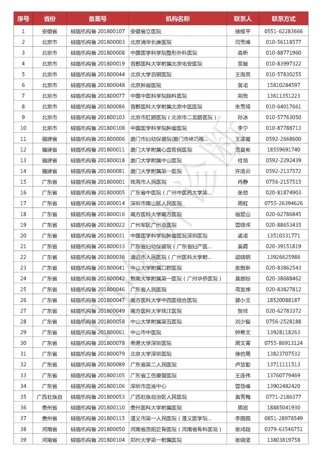 自2019年1月1日起,医疗器械(包括体外诊断试剂)临床试验申办者应当选取已经在备案系统备案的医疗器械临床试验机构,按照《医疗器械临床试验质量管理规范》(食品药品监管总局 国家卫生计生委令第25号)和《体外诊断试剂注册管理办法》(食品药品监管总局令第5号)的有关要求开展临床试验。 自《医疗器械临床试验机构条件和备案管理办法》于2018年1月1日施行以来,截止至2019年6月1日,共有116家医疗机构完成医疗器械临床试验机构备案。