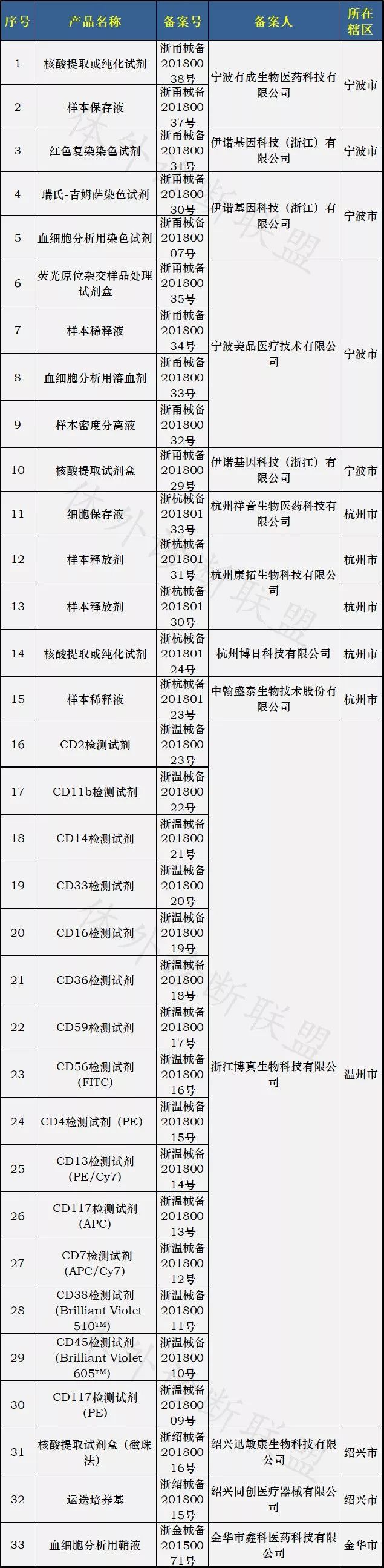 小Q还整理了该通告第一类医疗器械备案产品中的有关体外诊断试剂的数据,供大家参考。