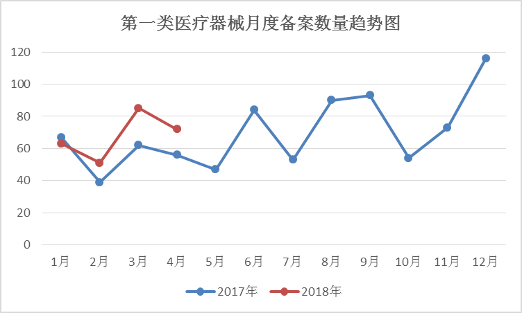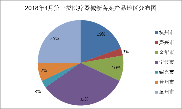 4月,浙江省内各市食品药品监督管理局共新备案第一类医疗器械产品72个,其中体外诊断试剂33个。