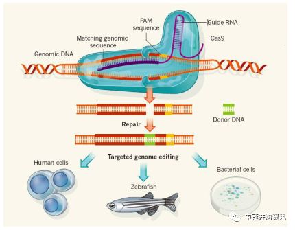 ③基因芯片 基因芯片(GeneChip)(又称DNA芯片、生物芯片)又称DNA微阵列(DNA microarray),其原型是80年代中期提出的。基因芯片的测序原理是杂交测序方法,即通过与一组已知序列的核酸探针杂交进行核酸序列测定的方法,在一块基片表面固定了序列已知的靶核苷酸的探针,当溶液中带有荧光标记的核酸序列与基因芯片上对应位置的核酸探针产生互补匹配时,通过确定荧光强度最强的探针位置,获得一组序列完全互补的探针序列。据此可重组出靶核酸的序列。 基因芯片的优势在于可以在一张芯片上都是检测多个靶基因,效率较高,但其灵敏度和特异性偏低的问题也极大的限制了其在临床上的应用。 2014年1月17日,美国食品药品监督管理局(FDA)批准了Affymetrix公司的CytoScan Dx Assay,该检测用于检测染色体的变异,这种变异可能与儿童的发育迟缓或智力残疾有关。基于血液样品,该测试可以一次试验就检测出整个基因组的染色体大片段及小片段的缺失及扩增。 在我国,博奥生物以基因芯片起家,其耳聋基因检测芯片2009年获FDA批准,市场占有率达50%以上。 ④ PCR 广义的基因检测包含部分PCR方法,即通过PCR确定某位点等位基因情况(PCR作为分子诊断的另一应用为检测某一段DNA的有无,如乙肝病毒载量检测等)。荧光定量PCR和数字PCR均可用于此用途。后文将有详细论述。 ⑤二代测序 二代测序区别于一代测序主要在于,可以一次检测复杂组分中每段DNA的序列,且通量更高。该技术一经推出,对科研和临床产生了重大的影响,成为产业和资本竞相追逐的对象。 由于Sanger测序,DNA质谱检测和基因芯片方法均较为成熟,已经几乎与投资领域无关,本文将着重就PCR与二代测序进行介绍分析。 基因编辑 基本原理 基因编辑(GeneEditing)包含多种方法,如ZFN,TALEN和CRISPR/Cas9等。ZFN和TALEN并非目前投资领域关注的重点,这里不作详细介绍,主要介绍CRISPR/Cas9的相关内容。 成簇规律间隔短回文重复序列系统技术(Clustered regularly interspaced short palindromic repeats /CRISPRassociated proteins)为继ZFN,TALEN之后的第三代基因编辑技术,靶向效率更高。操作简单,构建成本低,编辑效率高。目前,CRISPR/Cas9系统几乎可实现对任何基因的编辑。