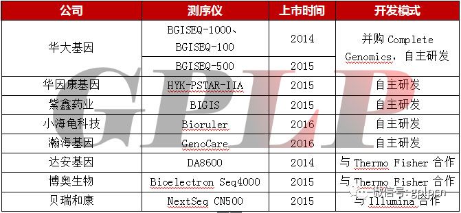 图五:2016年测序仪产品市场分布情况 在中国,由于技术和成本的优势,国内测序服务市场基本被华大基因、贝瑞和康和安诺优达所占据,但这些企业同样在上游端缺乏核心技术,研发投入也相对于海外巨头有不小的差距,这就使得短期内国内公司想打破上游龙头公司的垄断地位几乎不可能的,自然,也就造成中国公司只能赚取整个行业当中的微薄利润,比如,从具体测序仪的销售情况中可以看出,国内所占据的市场规模不到2%。像达安基因、贝瑞和康的测序仪开发也是采用与国外龙头合作的形式,其核心技术应该还是掌握在别人手里,而华大基因在2013年收购CG后开始自主研发,但是其产品销售所占的市场规模跟寡头们没有可比性。