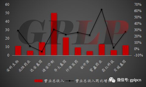 图九:2017年国内基因测序公司营业收入及增长率的情况(亿人民币) 除了达安基因和紫鑫药业以外,其他公司经营性现金流情况良好,达安基因主要是因为控股子公司新增保理、融资租赁、小贷业务的现金净流出增加,而紫鑫药业则是因为采购消耗性生物资产支付购货款较上期增加所致。