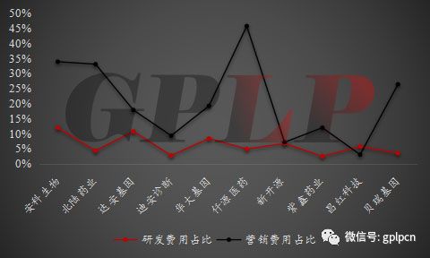 图十二:2017年各家公司研发费用和营销费用占比情况